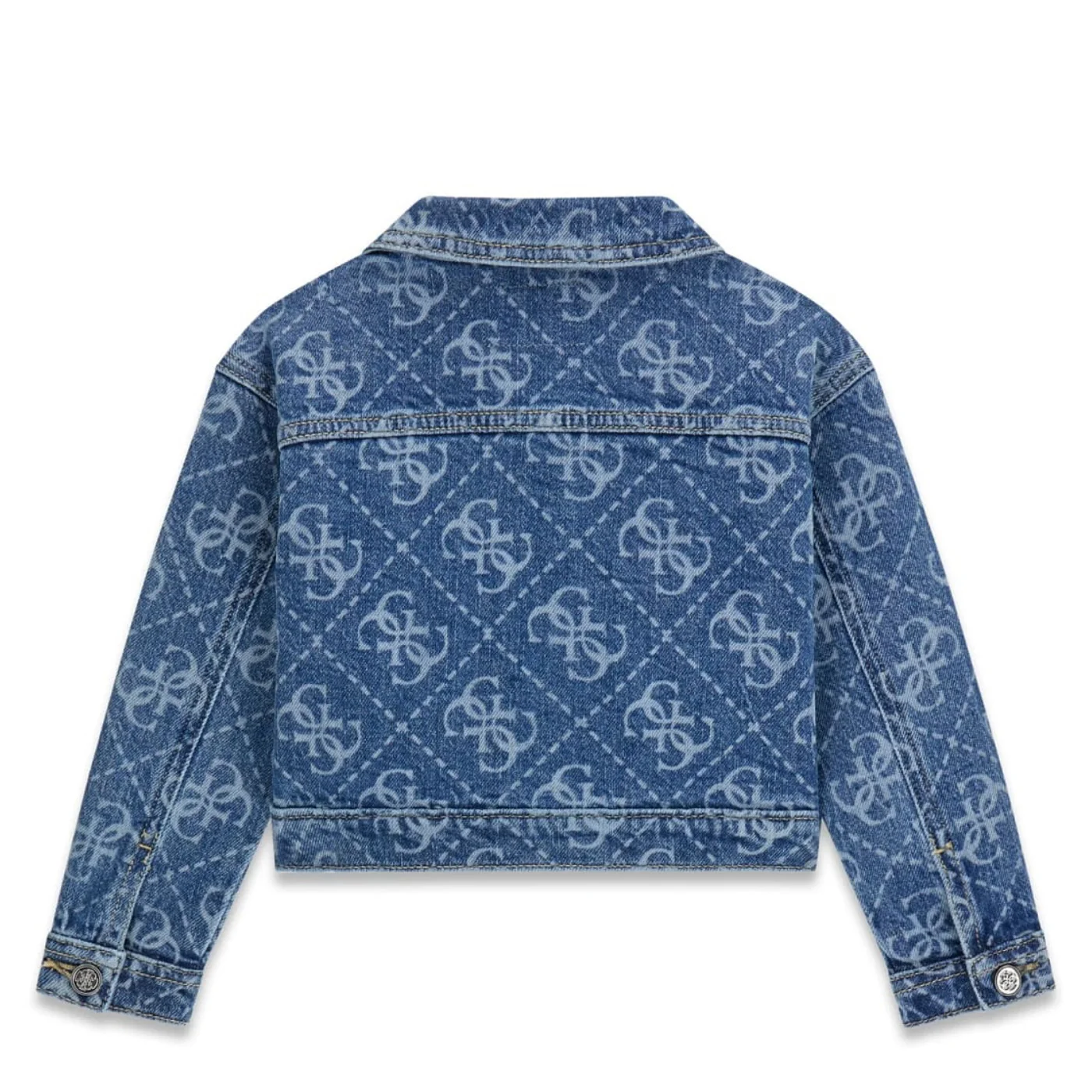 Guess giubbino bambina in jeans blu Denim in cotone Logo 4g all over Chiusura centrale con bottoni Tasche a toppa frontali con pattaCompรจosizione: 100% cotoneMade in IndiaCollezione Primavera Estate Vestibilitร :Taglia Etร