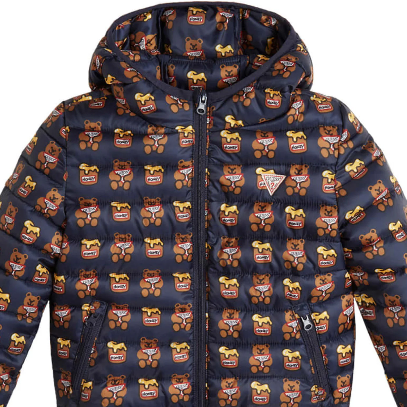 Guess giubbino 100 grammi padded hooded ls jacket bambino bluCappuccio non rimovibileChiusura centrale con zipTasche a filo con zipSrampa teddy All OverMade in Cina Composizione: 100% poliestereCollezione Continuativa Vestibilitร :Taglia Etร