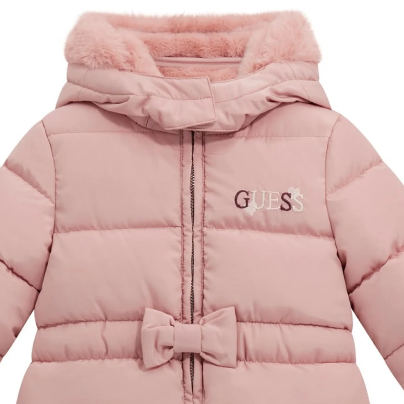 Guess giubbino lungo trapuntato neonata interno in pelliccia rosa