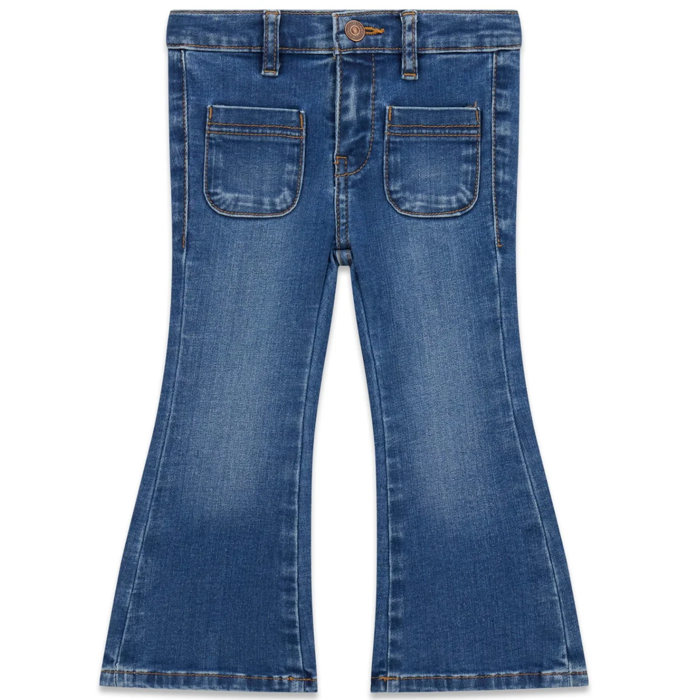 Guess jeans zampa neonata blu Denim in cotone Vita alta con passanti Chiusura con zip e bottone Tasche a toppa fronte retro con logoComposizione: 80% cotone 17% poliestere 3% elastan Made in PakistanCollezione Primavera Estate Vestibilitร :Taglia Etร