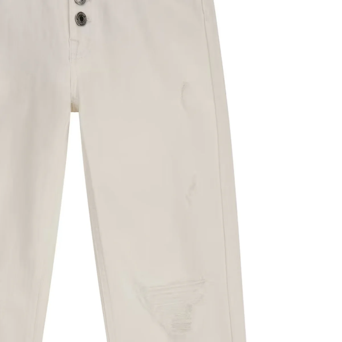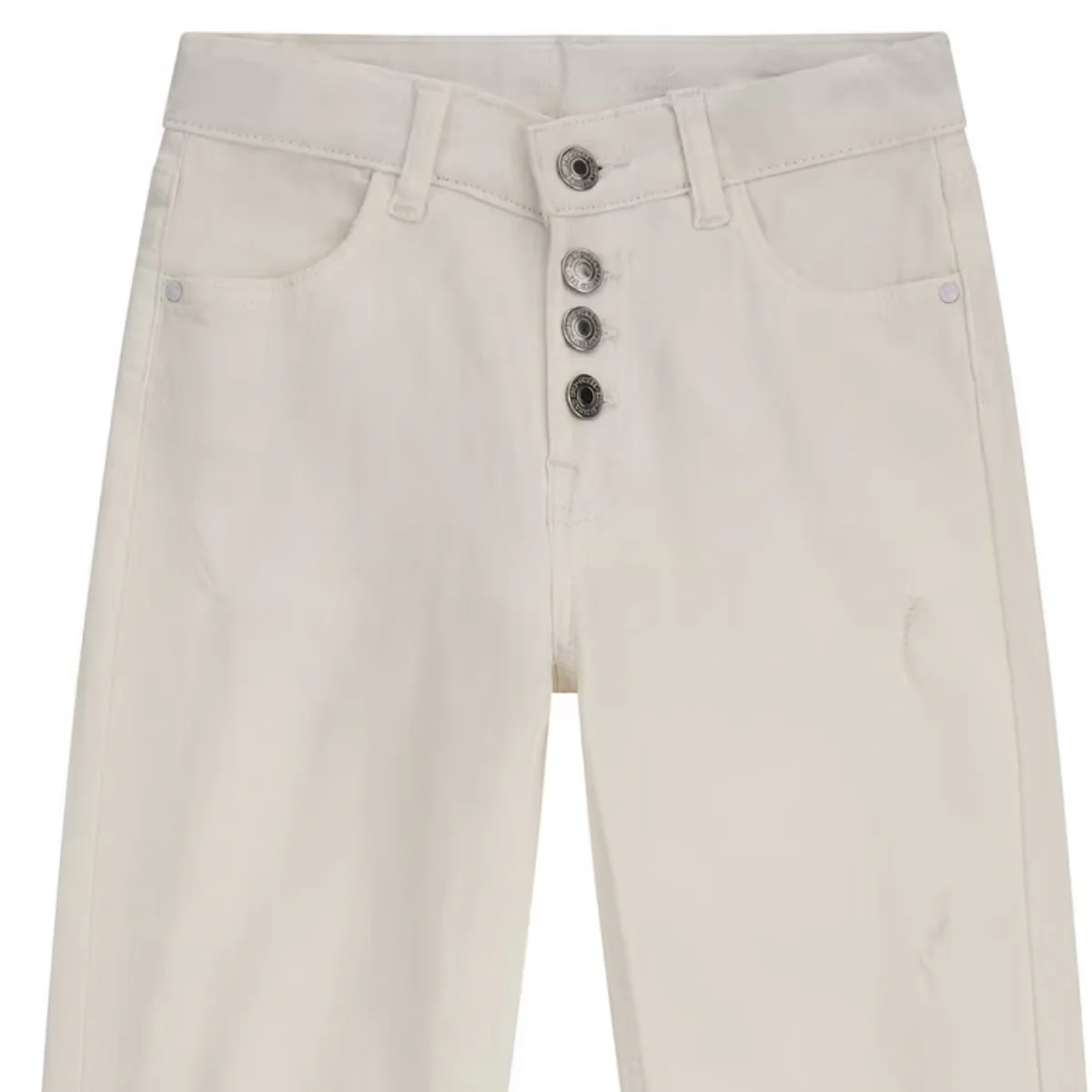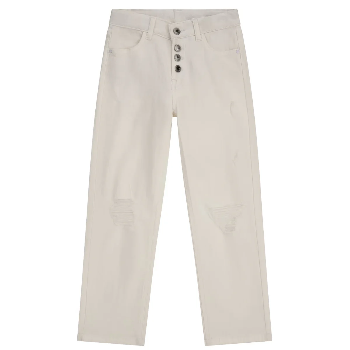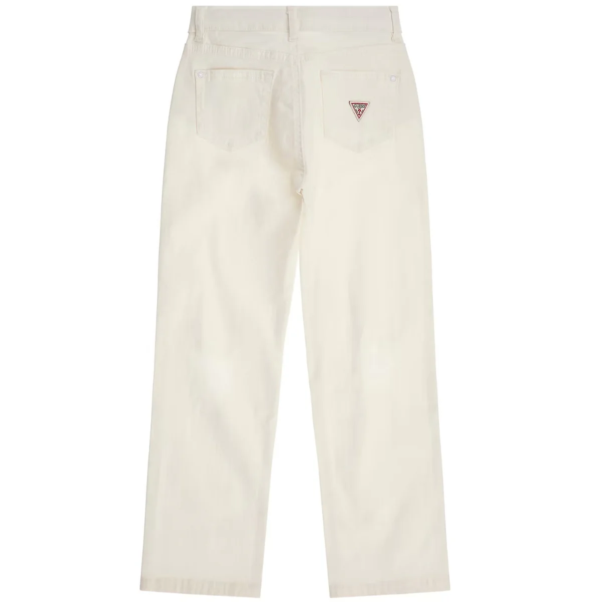 Guess pantalone ragazza denim in cotone bianco Vita alta con passanti Chiusura con bottoni logati Strappi frontaliComposizione: 98% cotone 2% elastanMade in PakistanCollezione Primavera Estate Vestibilitร :Taglia Etร