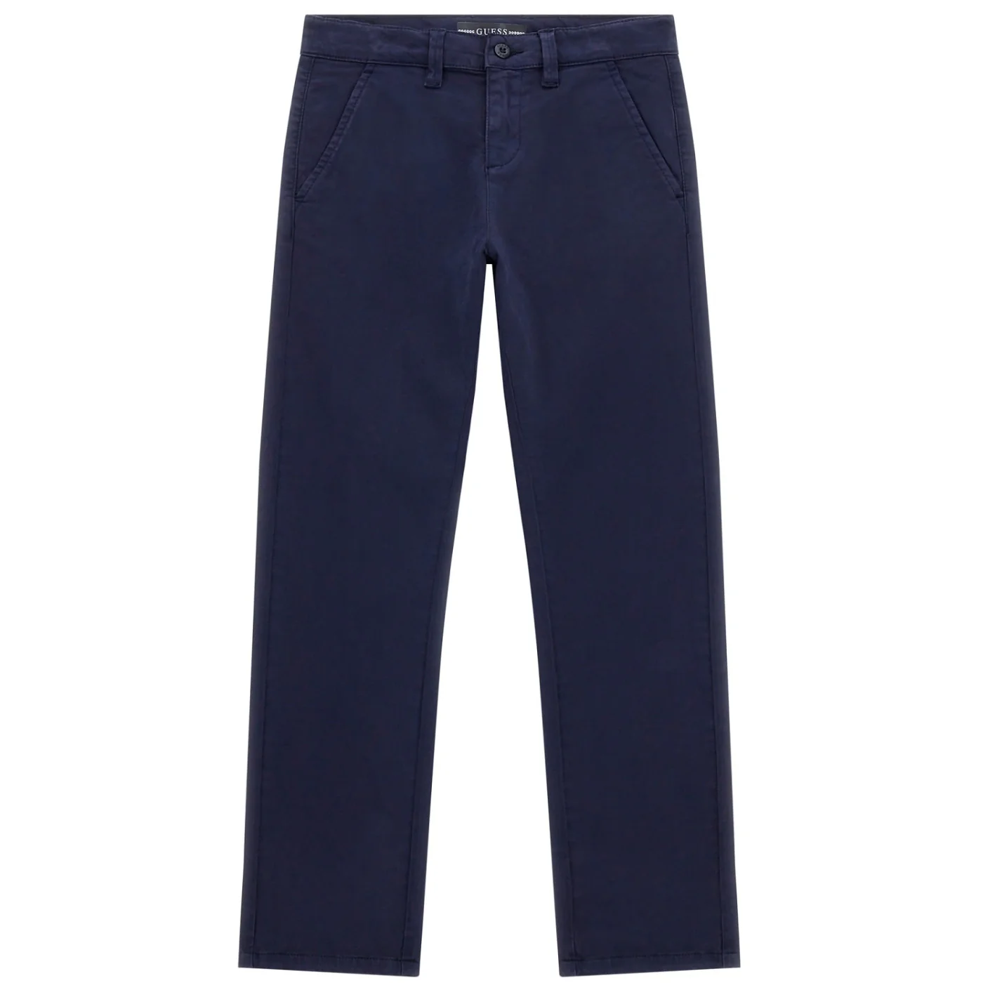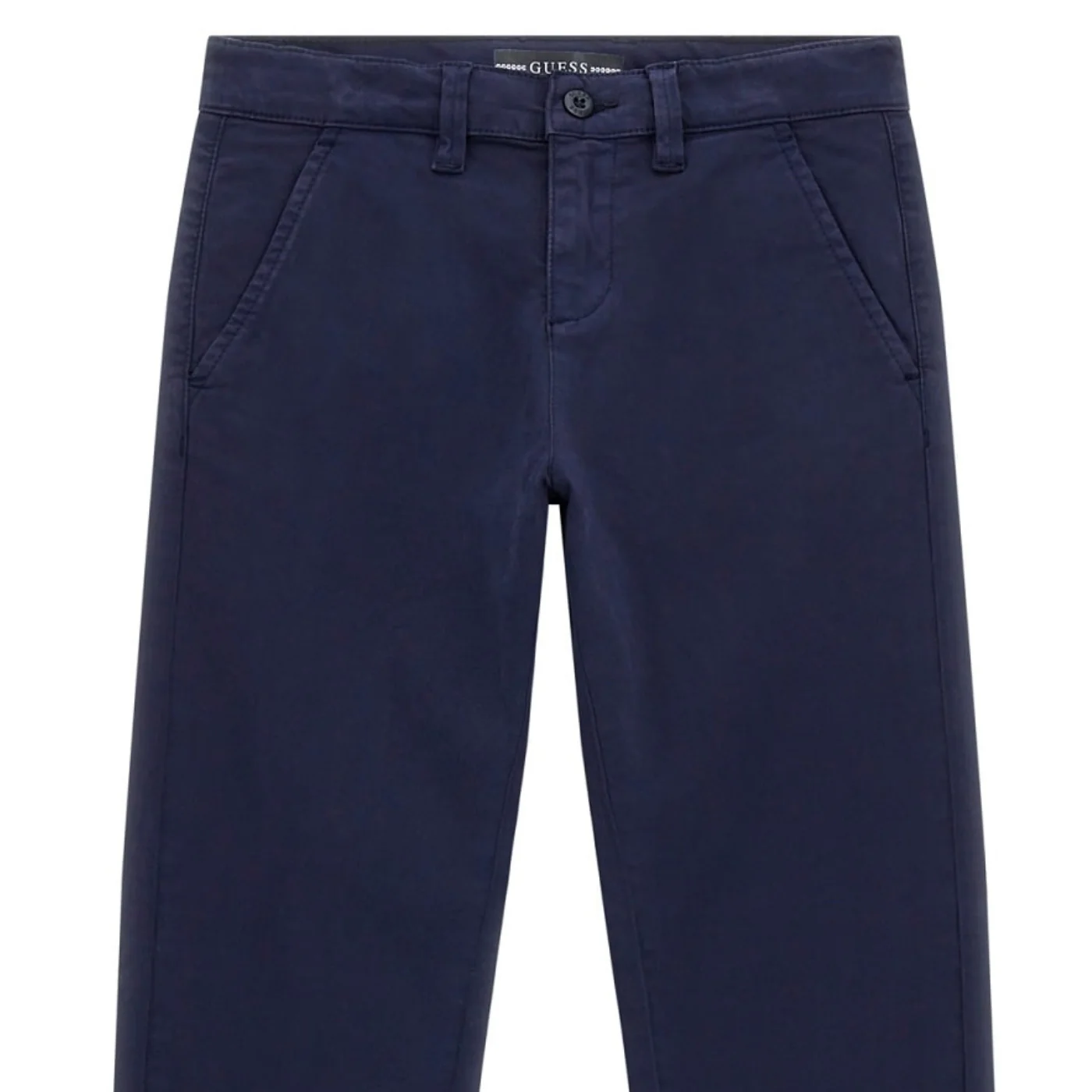 Guess pantalone chino ragazzo in cotone blu Vita con passanti Chiusura con zip e bottone Tasche a filo Composizione: 97% cotone 3% elastanMade in PakistanCollezione Continuativa Vestibilitร :Taglia Etร