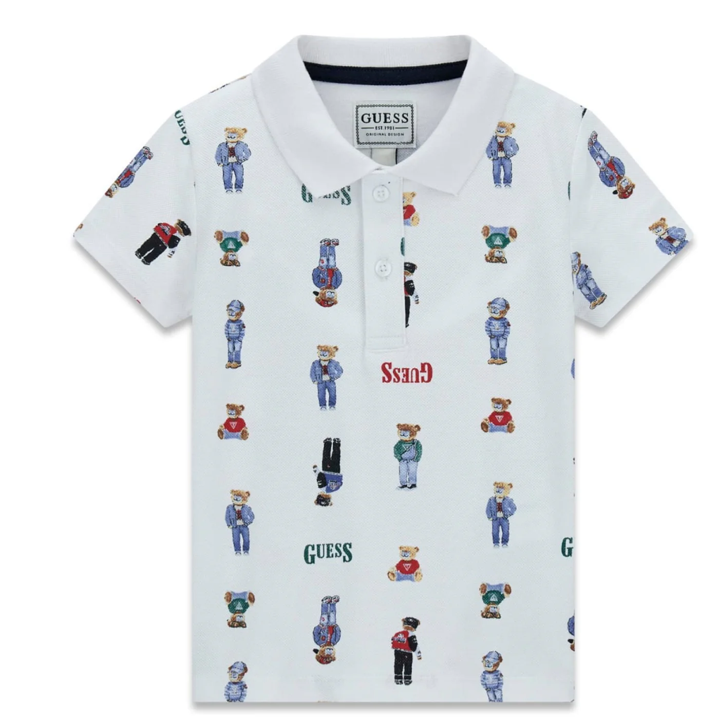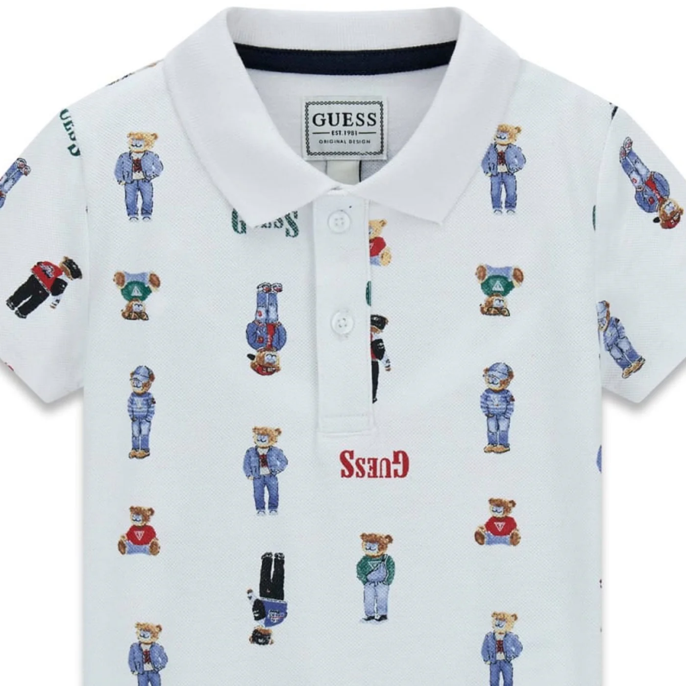 Guess polo baby in piquet di cotone bianca Maniche corte Logo e teddy all over Collo camicia Chiusura con bottoniComposizione: 100% cotoneMade in IndiaCollezione Primavera Estate Vestibilitร :Taglia Etร