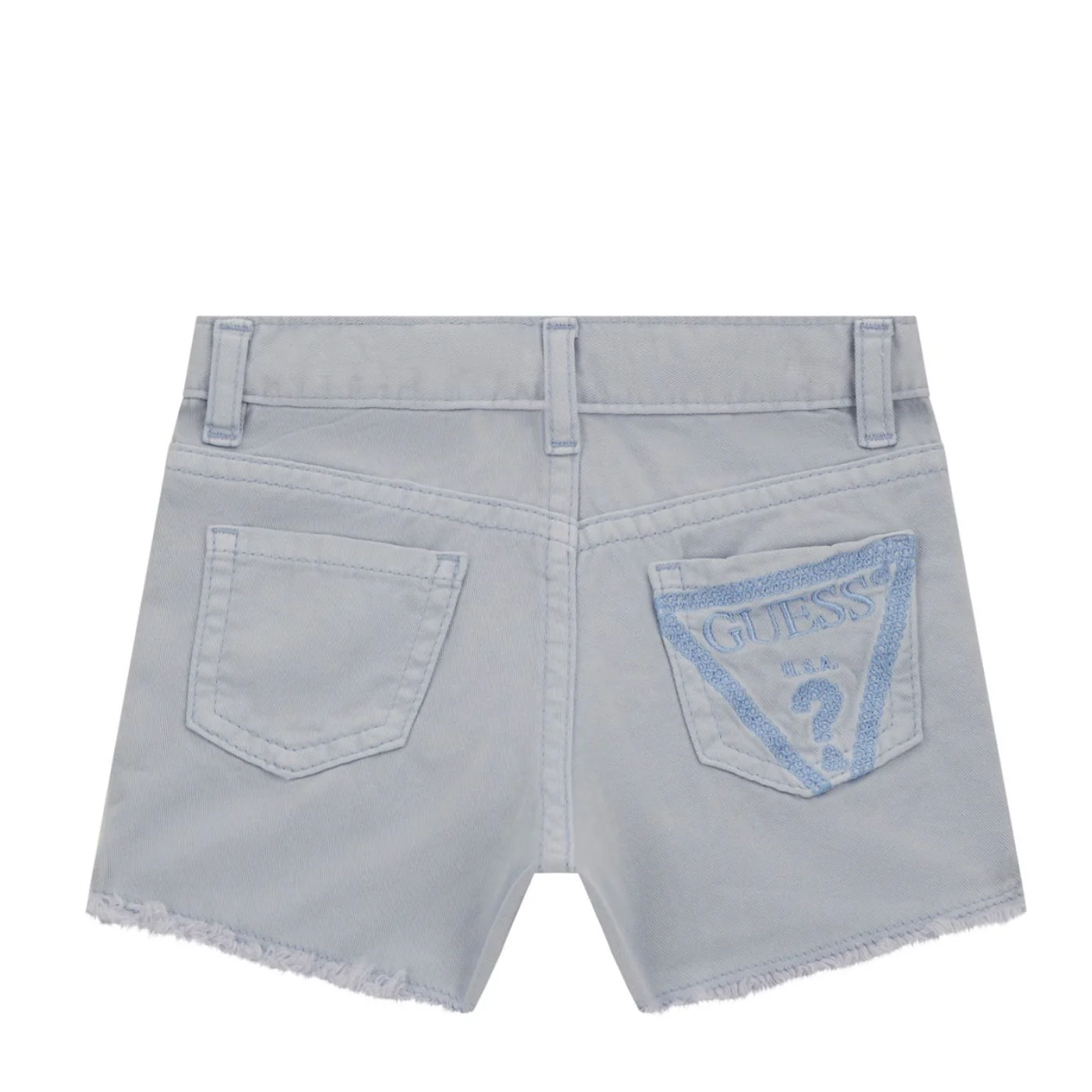 Guess shorts bambina in cotone lavanda Cinque tasche Vita con passanti Chiusura con zip e bottone Ricamo logo su tasca a toppa posterioreComposizione: 100% cotone Made in PakistanCollezione Primavera Estate Vestibilitร :Taglia Etร