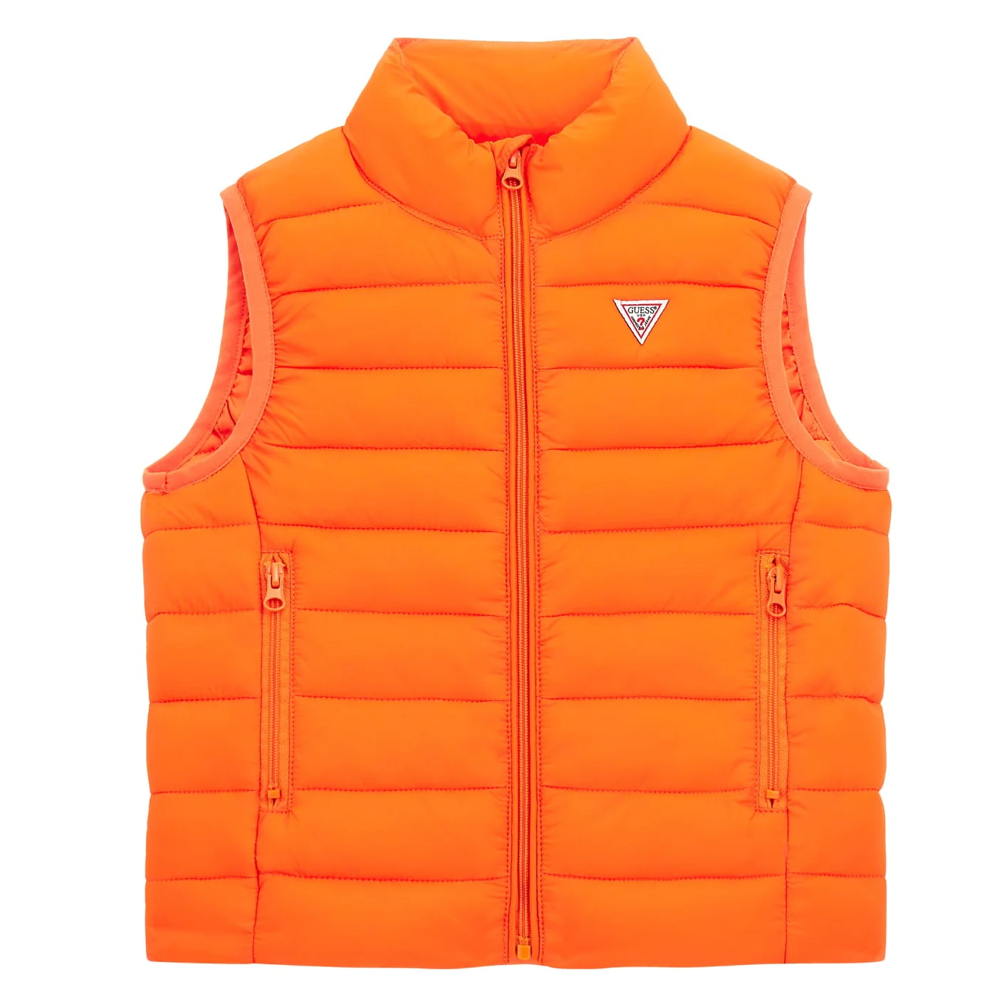Guess smanicato bambino unisex arancio Chiusura centrale con zip Tasche a filo con zip Patch logo lato cuoreComposizione: 100% poliammideMade in CinaCollezione Continuativa Vestibilitร :Taglia Etร