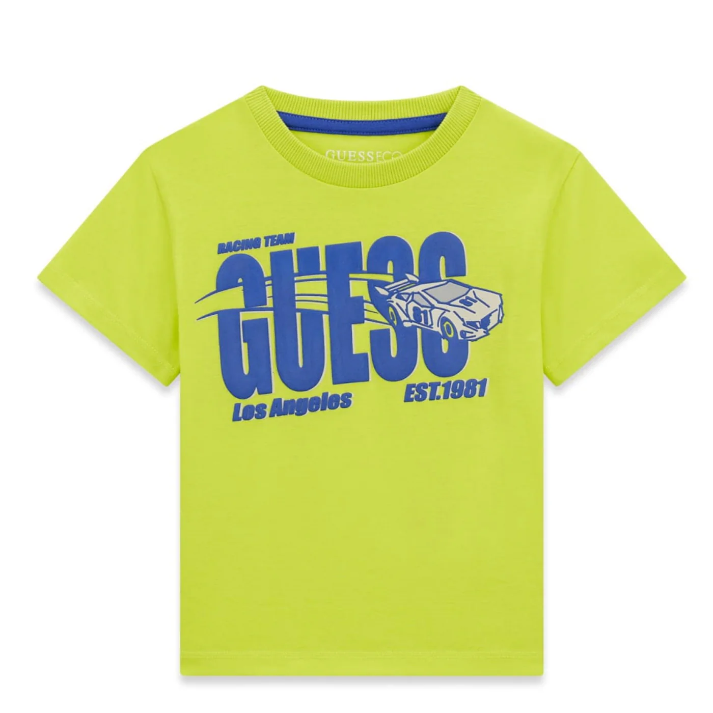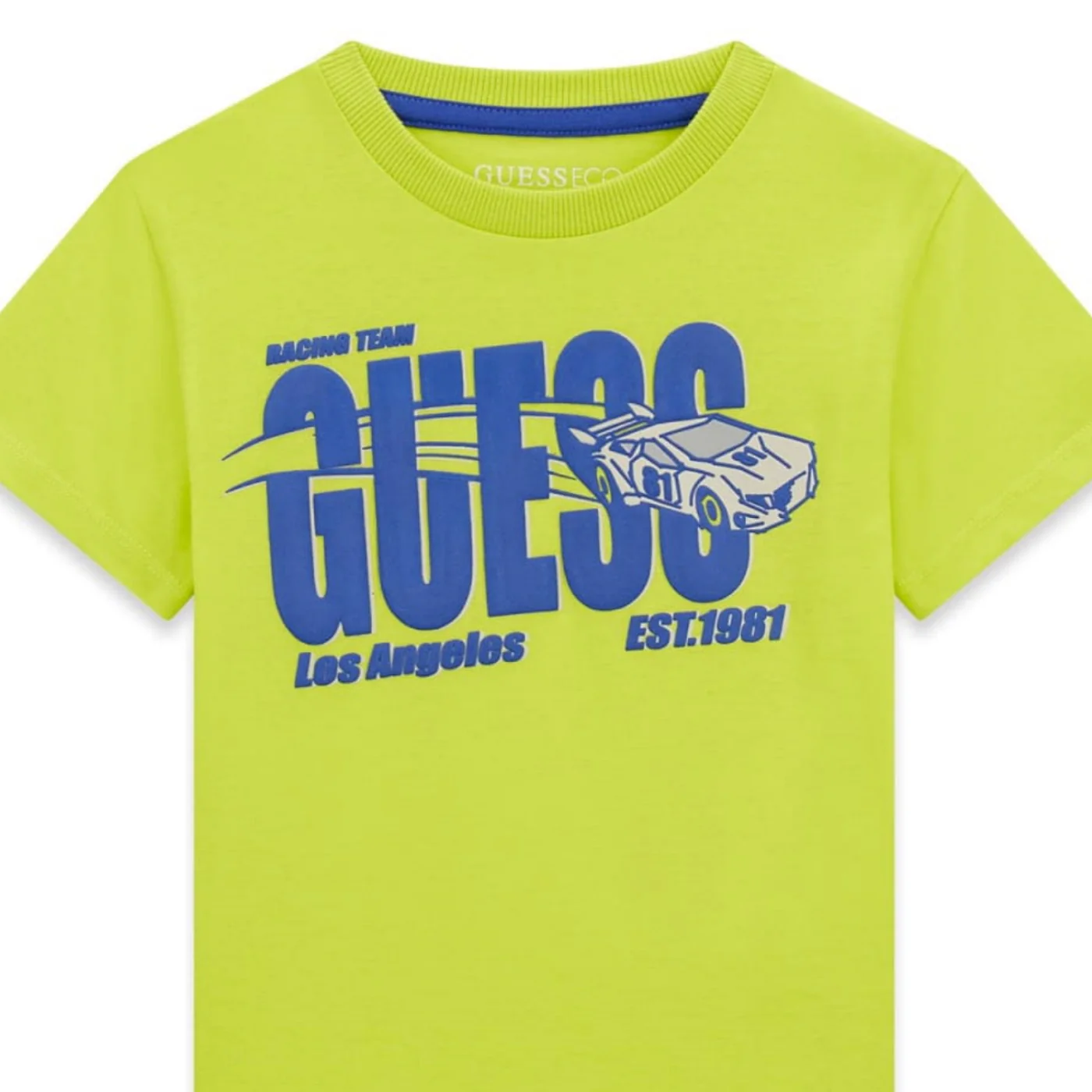 Guess t-shirt girocollo bambino in cotone lime Maniche corte Logo gommato frontaleComposizione: 100% cotoneMade in IndiaCollezione Primavera Estate Vestibilitร :Taglia Etร