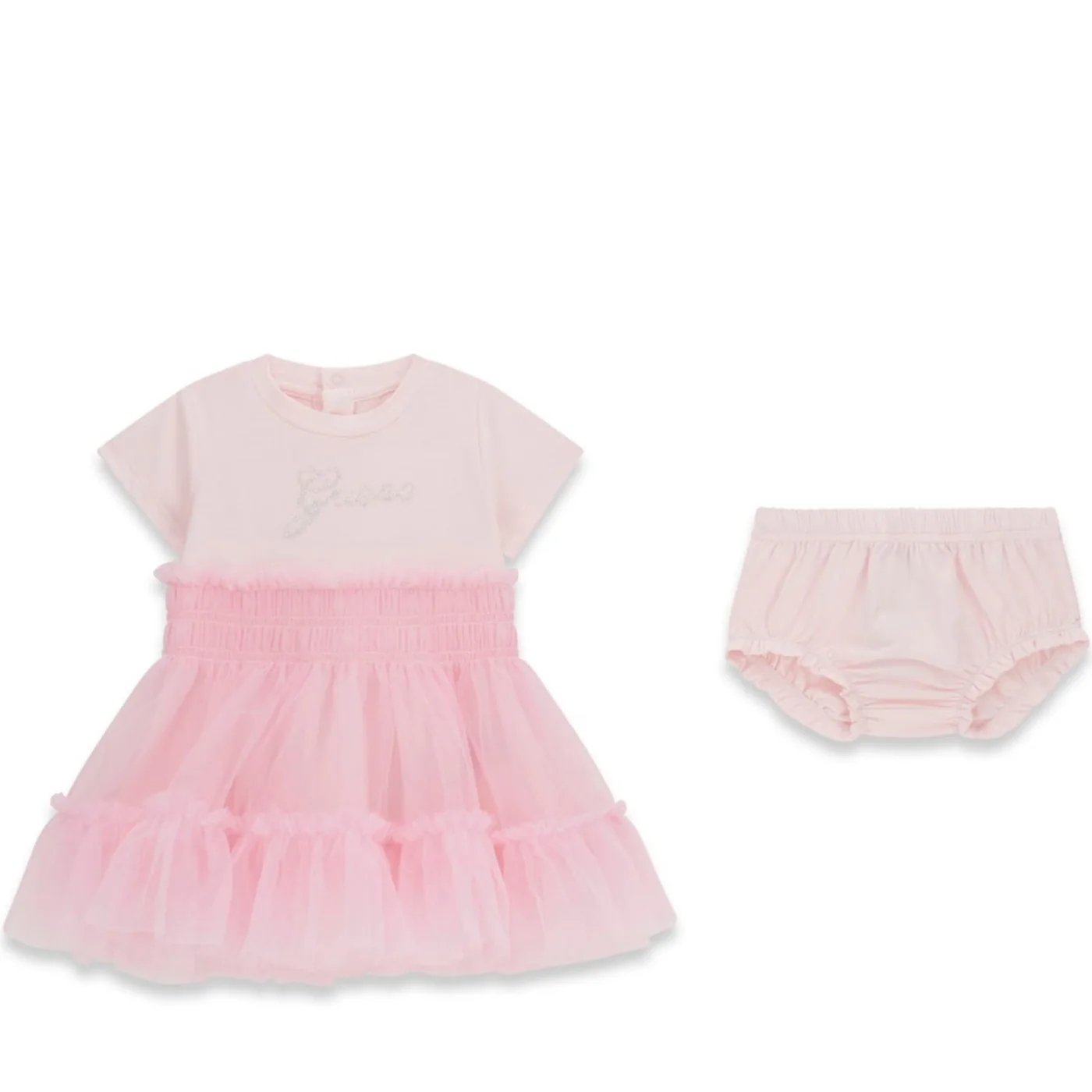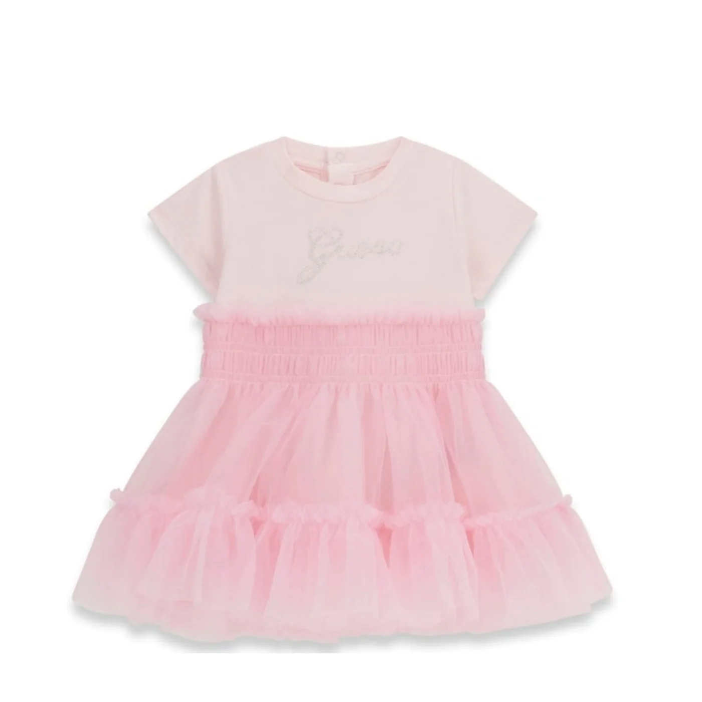 Guess vestito con coulotte girocollo neonata in tulle rosa