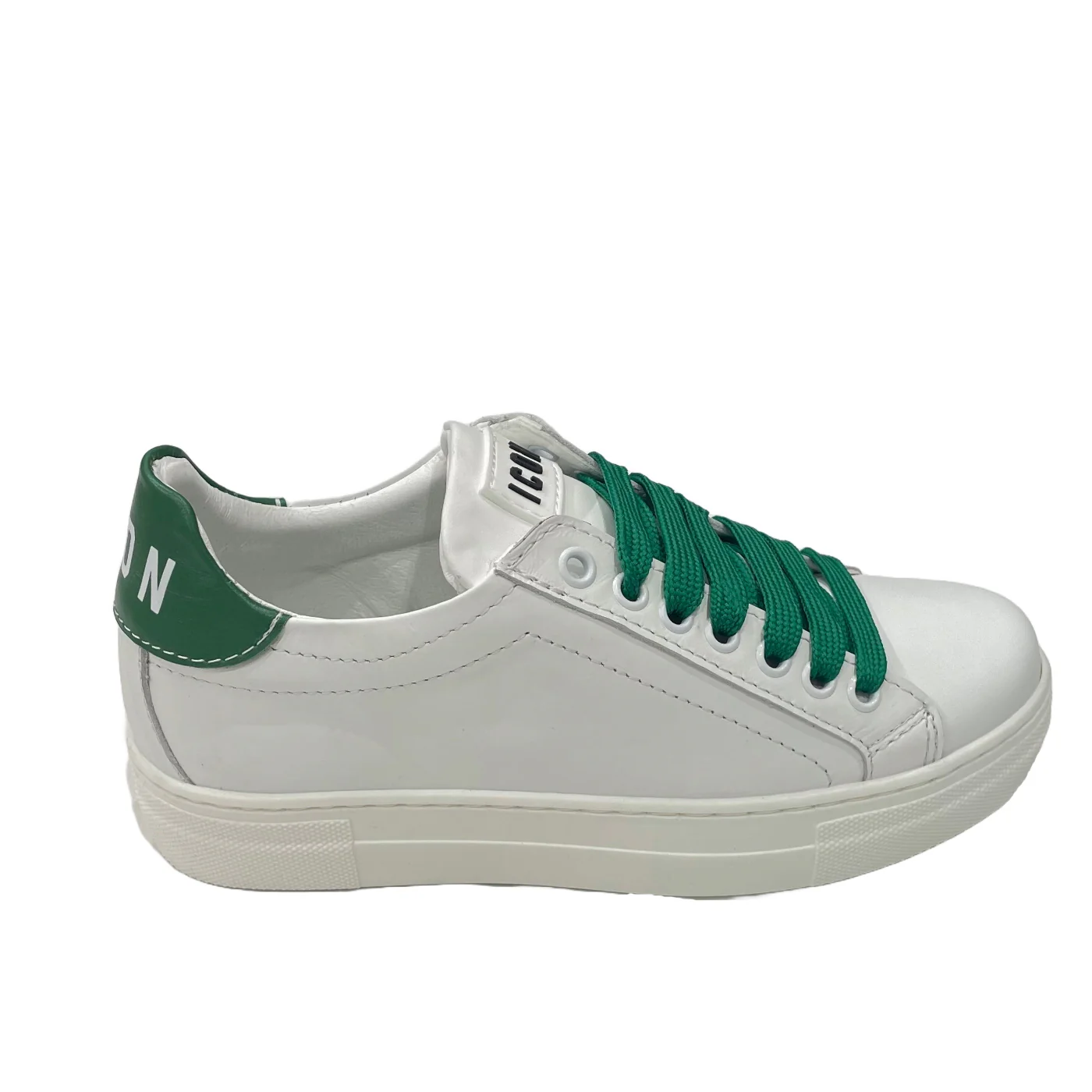 Icon sneackers unisex in pelle bianco verdeLogo fronte retro Chiusura con lacciComposizione: 100% pelleMade in ItalyCollezione Continuativa Vestibilitร :Tgalia Europea