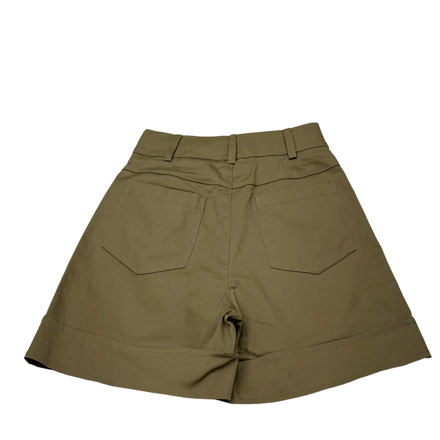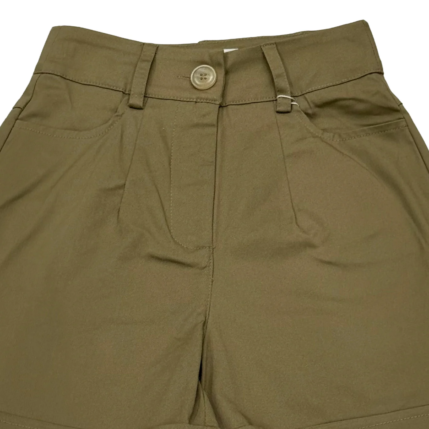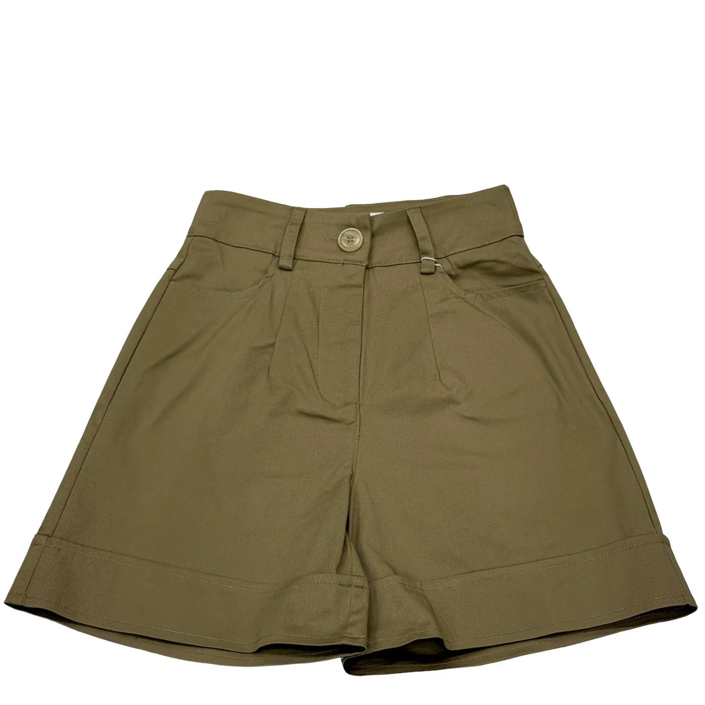 Koralline bermuda ragazza in cotone beige Vita alta con passanti Chiusura con zip e bottone Tasche fronte retro pPence frontali Risvolti sul fondoComposizione: 97% cotone 3% elastanMade in CinaCollezione Primavera Estate Vestibilitร :Taglia Etร