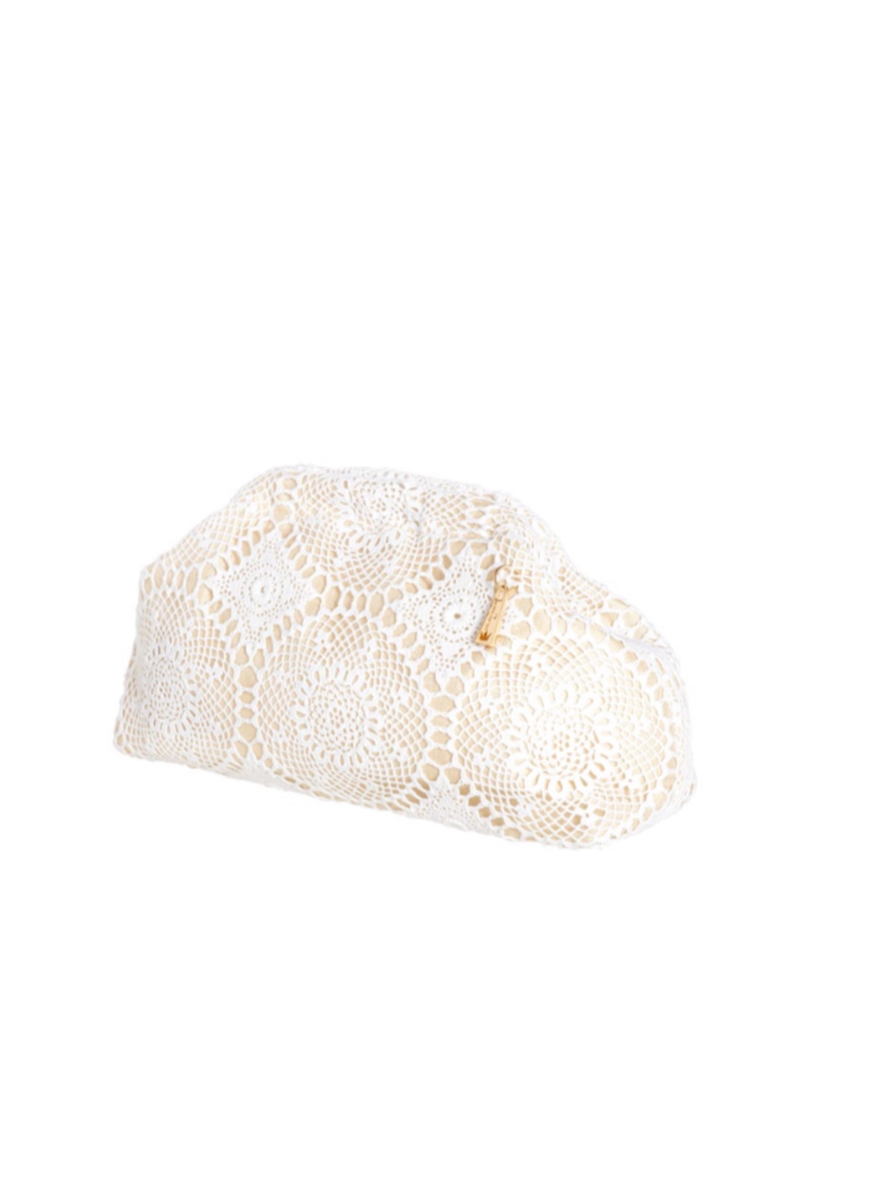 Borsa in crochet di cotone, apertura e chiusura a scatto, tasca interna a soffietto. Ganci per applicare eventuale tracolla. Prodotto artigianale made in Italy.
