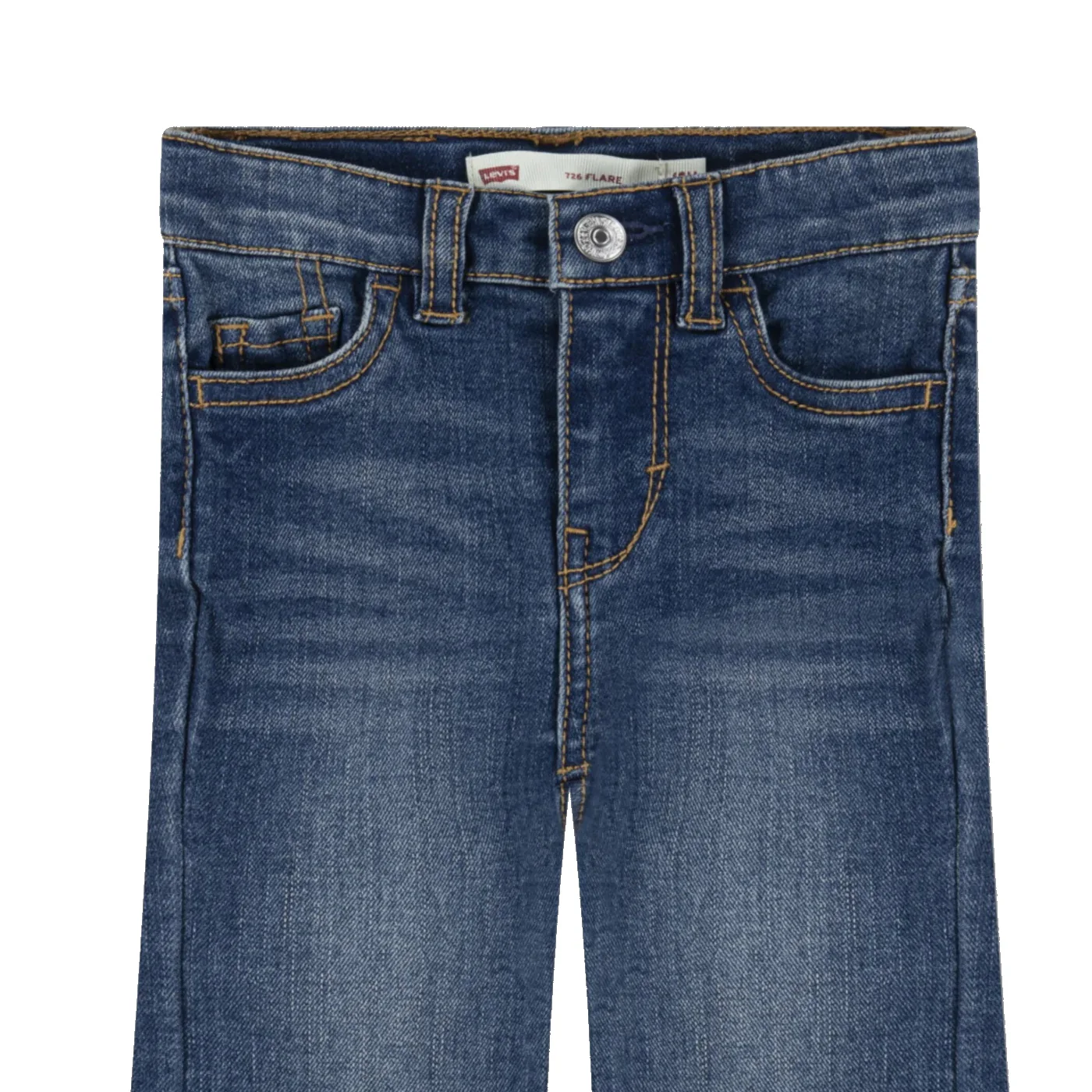 Levi’s lvg 726 flare jeans neonata in denimVita regolabile internamenteChiusura con bottone metallicoComposizione: 54% cotone 27% poliestere 17% viscosa 2% elastanMade in IndiaCollezione Continuativa Vestibilitร :Taglia Etร