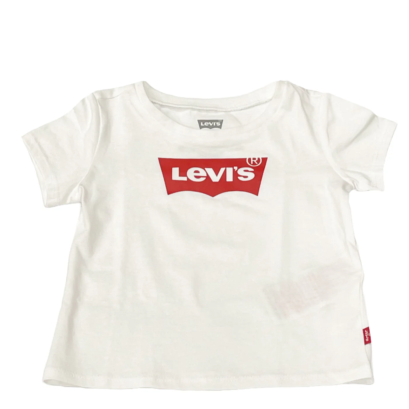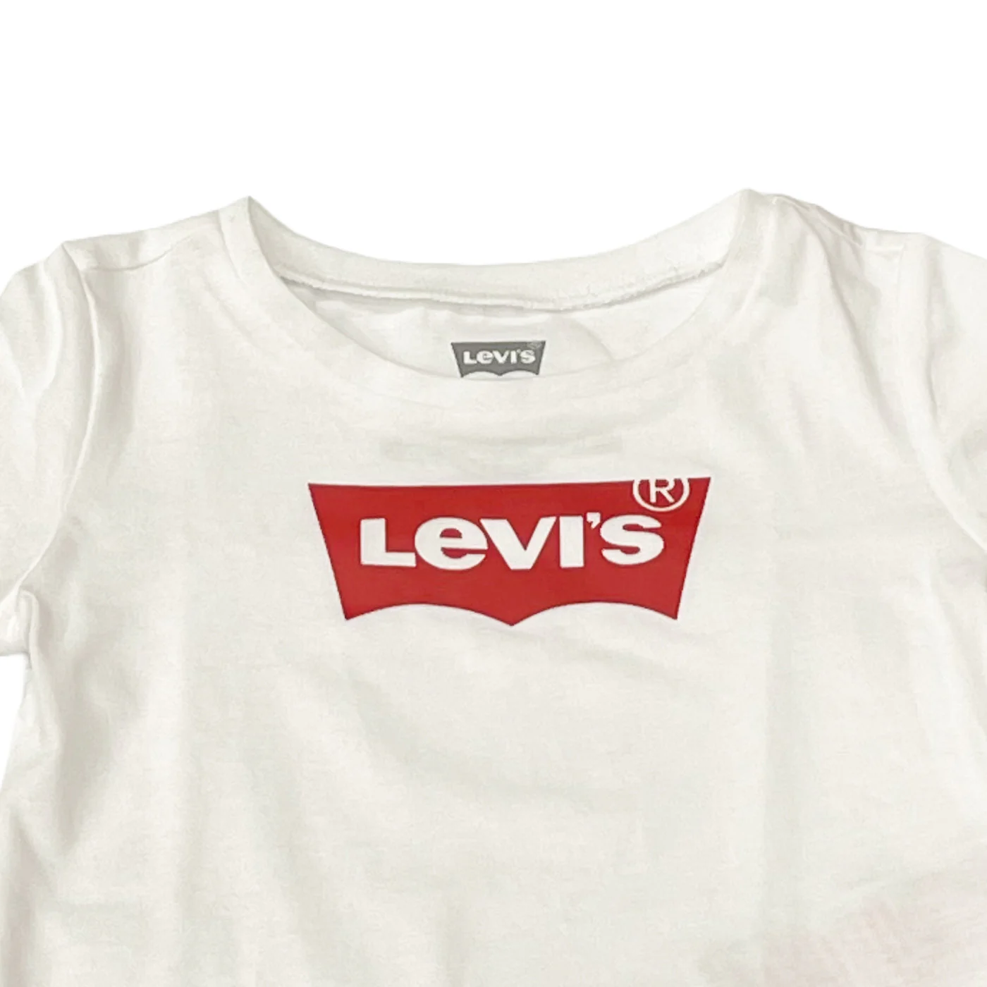 Levis t-shirt batwing cotone bianco neonataGirocolloManiche corteMaxi stampa logo frontaleComposizione: 60% cotone 40% poliestereMade in VietnamCollezione Continuativa Vestibilitร :Taglia Etร
