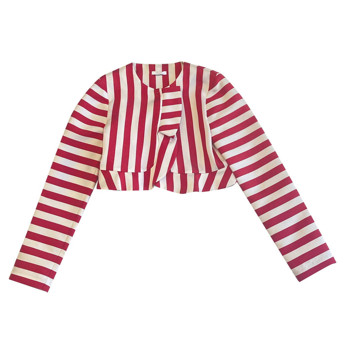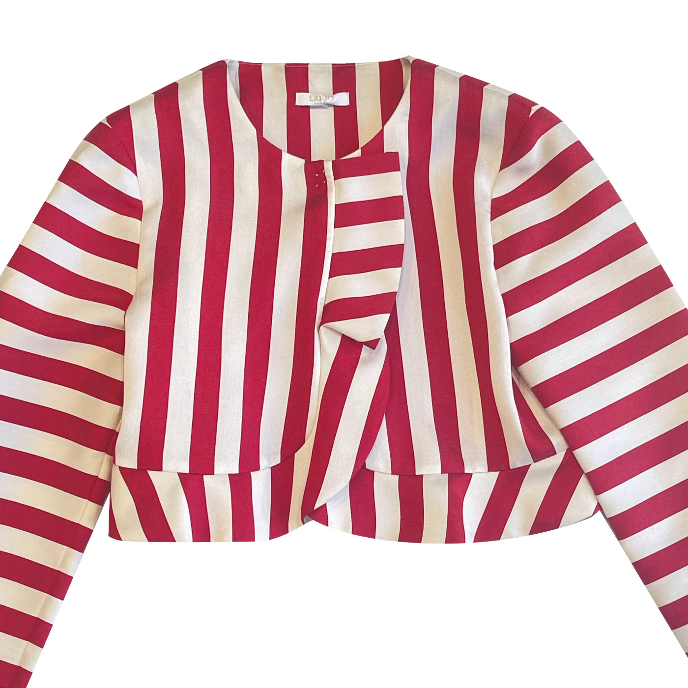 Liu-Jo bolerino bambina misto viscosa bianco rosso a righe Maniche lunghe Chiusura con rouge e bottone a pressione nascostoComposizione: esterno 60% viscosa 27% poliestere 13% poliammide interno 100% cotoneMade in ChinaCollezione Primavera Estate Vestibilitร :Taglia Etร