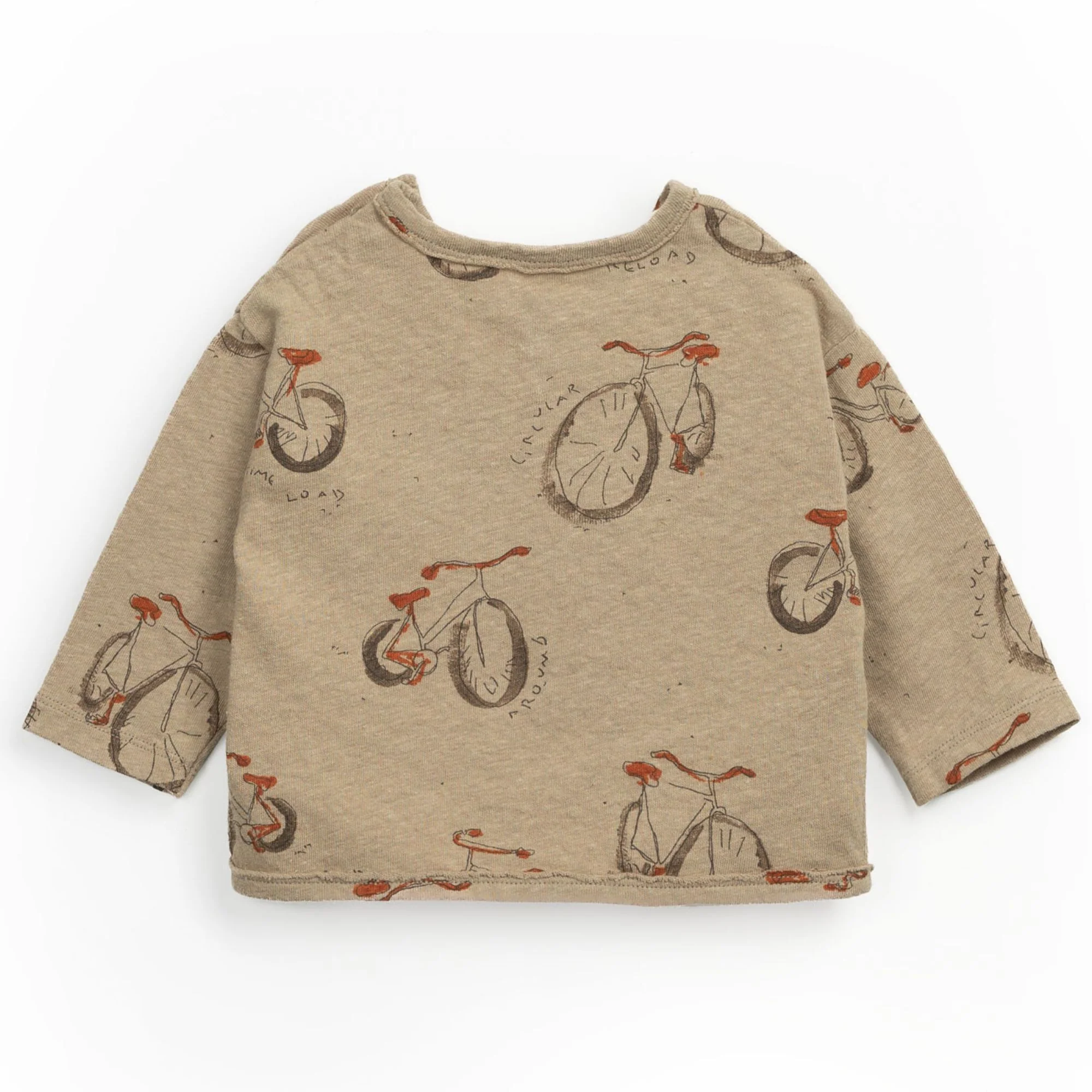 T-shirt in misto cotone biologico stampa biciclette*, maniche lunghe e collo rotondo, apertura sulla spalla con bottoni in cocco.