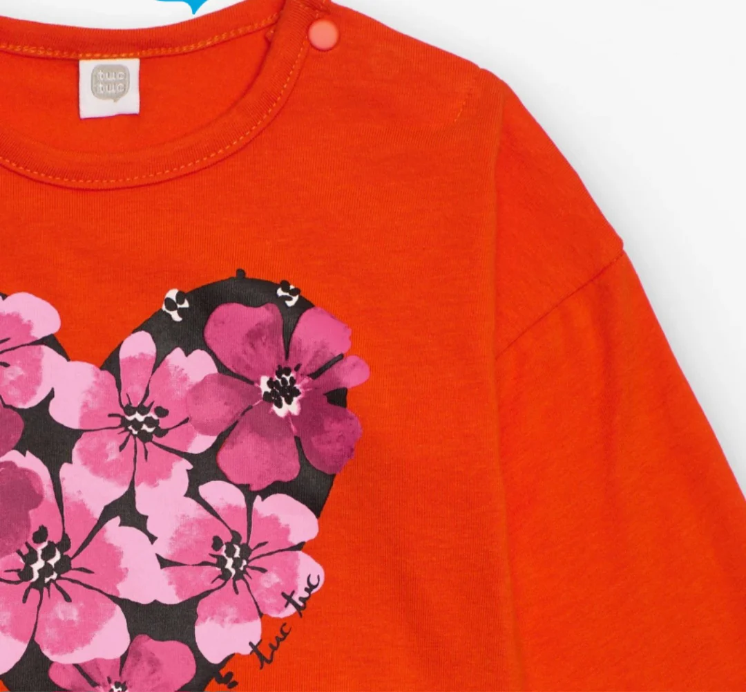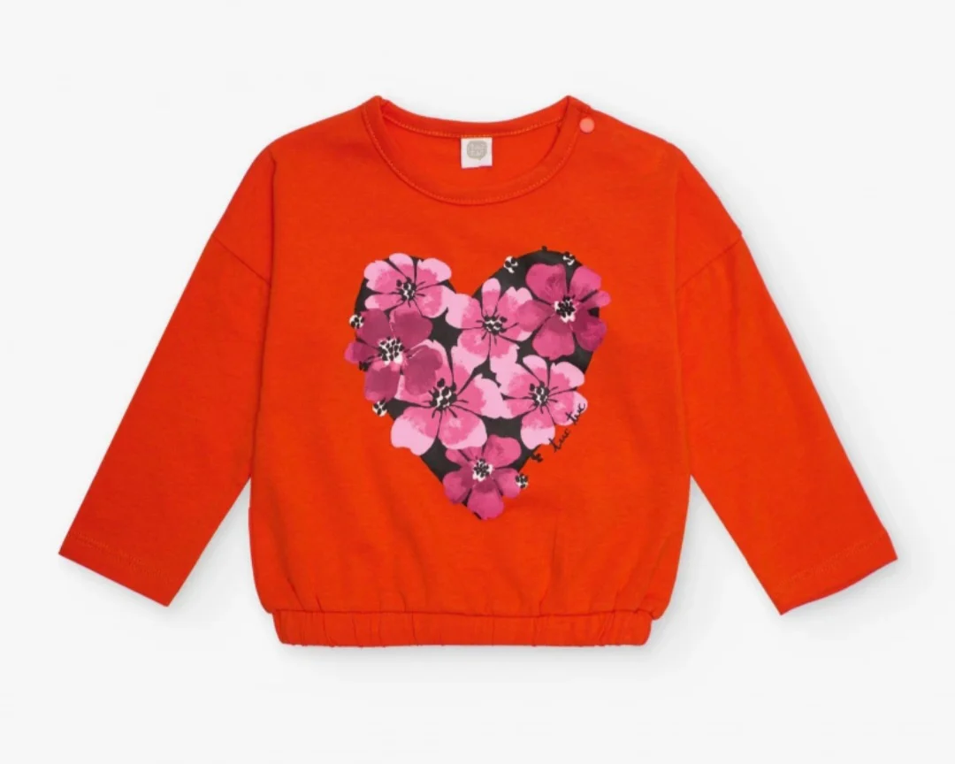 Maglia arancio in caldo cotone da bambina con bellissimo cuore floreale