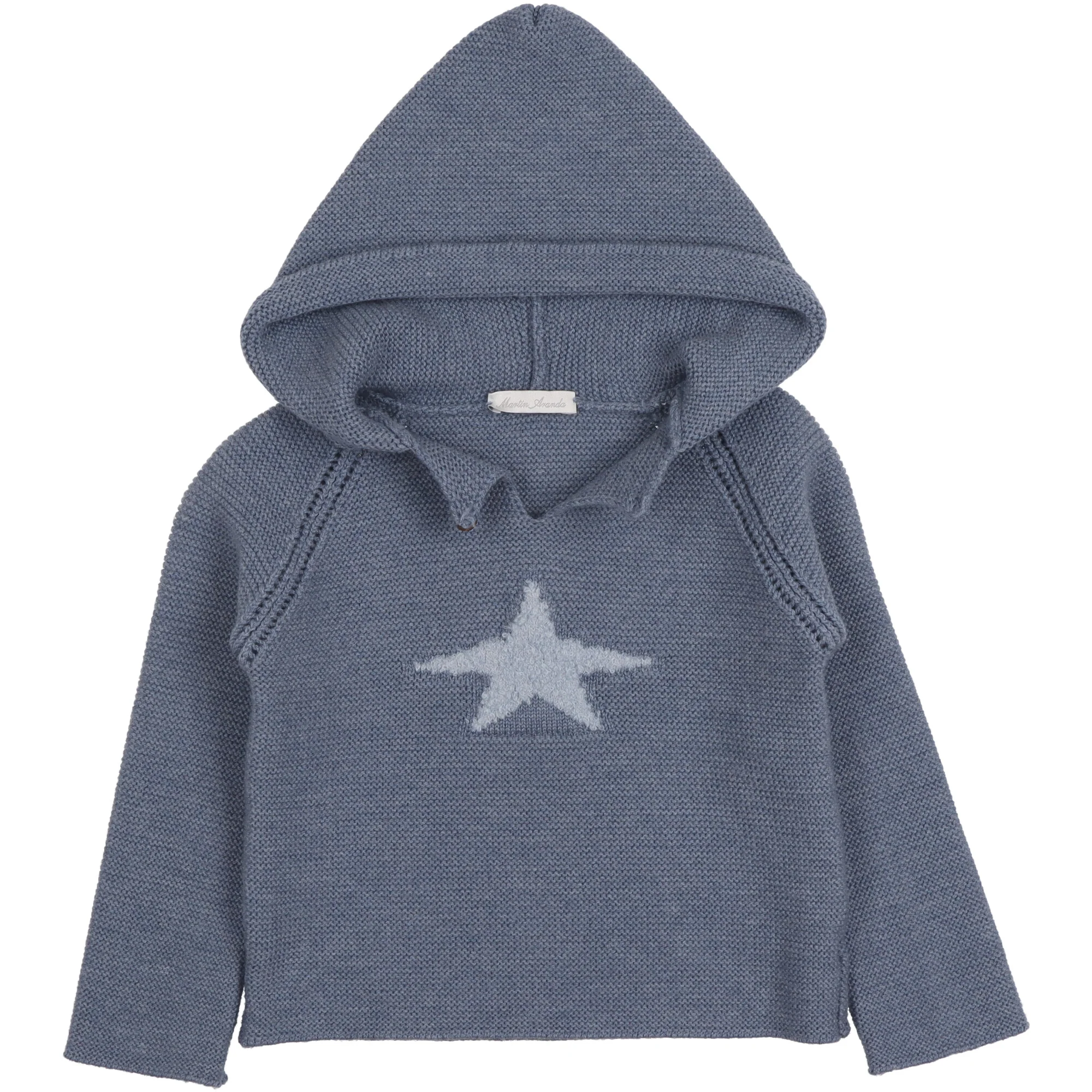 DESCRIZIONERealizzato in morbida lana blu melangรฉ, maniche lunghe, cappuccio con risvolto e bottone in legno davanti. Stella in azzurro polvere al centro in rilievo. Vestibilitร  slim e lunghezza sotto la vita. Variante unica. Composizione: 100% lana.Cura: si consiglia lavaggio a mano, non candeggiare, no asciugatrice, stirare a bassa temperatura 110ยฐC, si puรฒ lavare a secco.