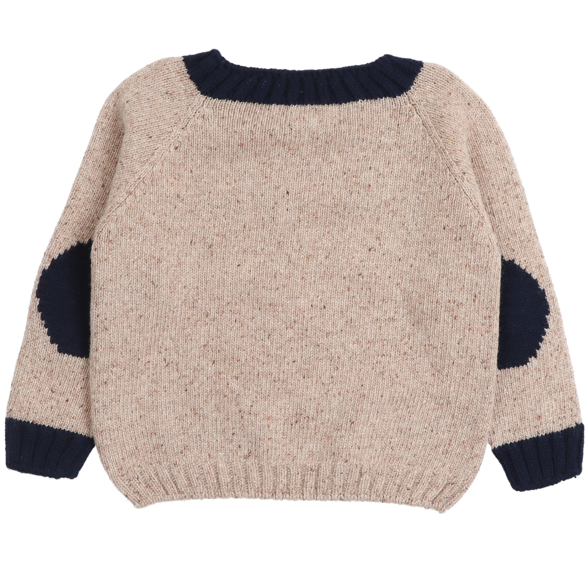 Maglione dal design classico e curato nei dettagli, perfetto per la stagione autunno-inverno. Realizzato in morbida maglia color beige mรฉlange, รจ impreziosito da toppe rinforzate ai gomiti in contrasto blu, per uno stile senza tempo e una maggiore resistenza.