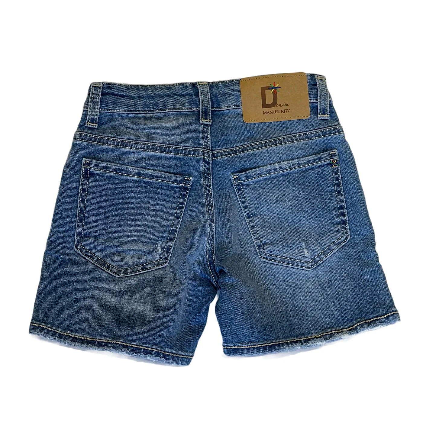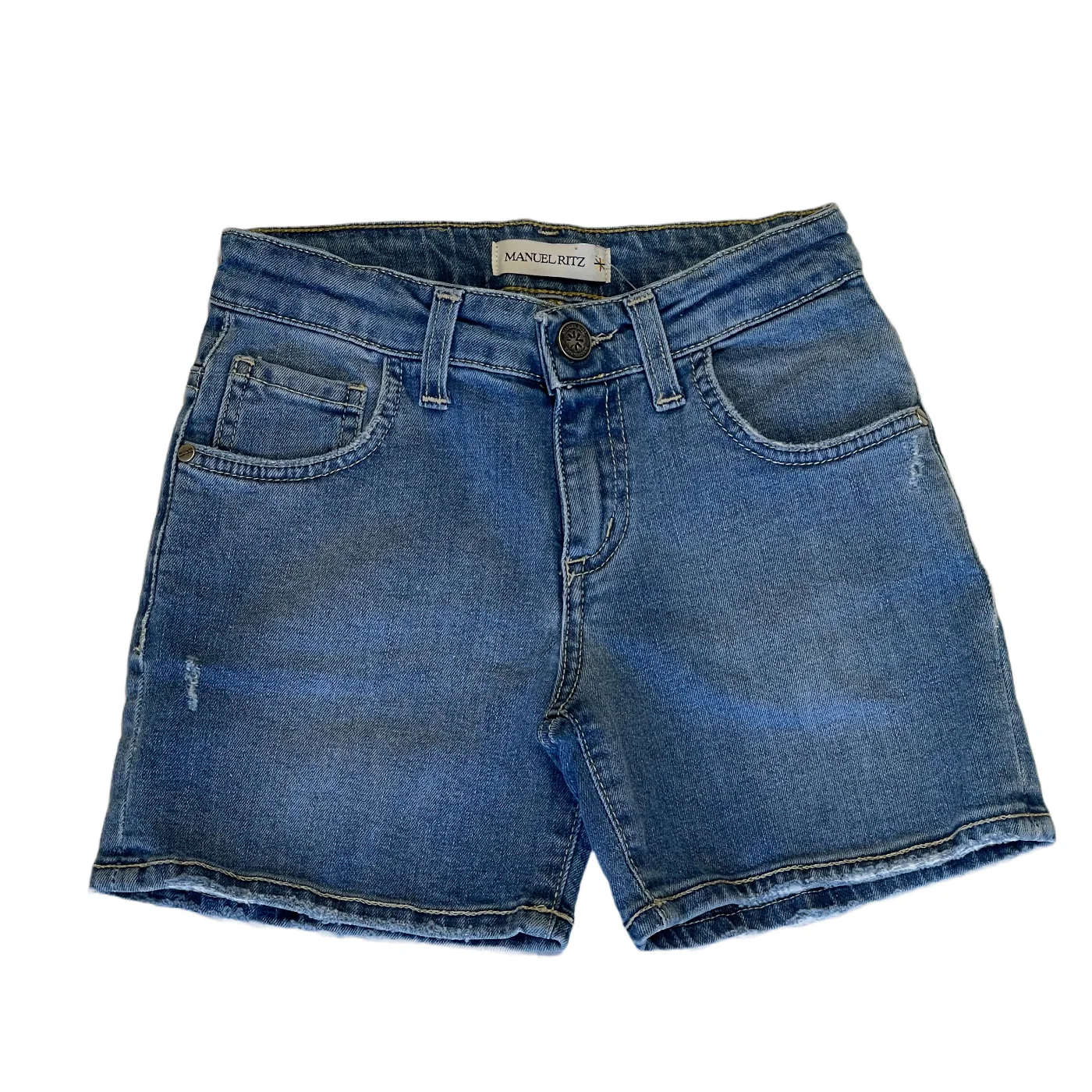 Manuel Ritz bermuda jeans bambino blu Denim in cotone Cinque tasche Vita con passanti Chiusura con zip e bottoneComposizione: 98% cotone 2% elastanMade in Italia Collezione Primavera Estate Vestibilitร :Taglia Etร