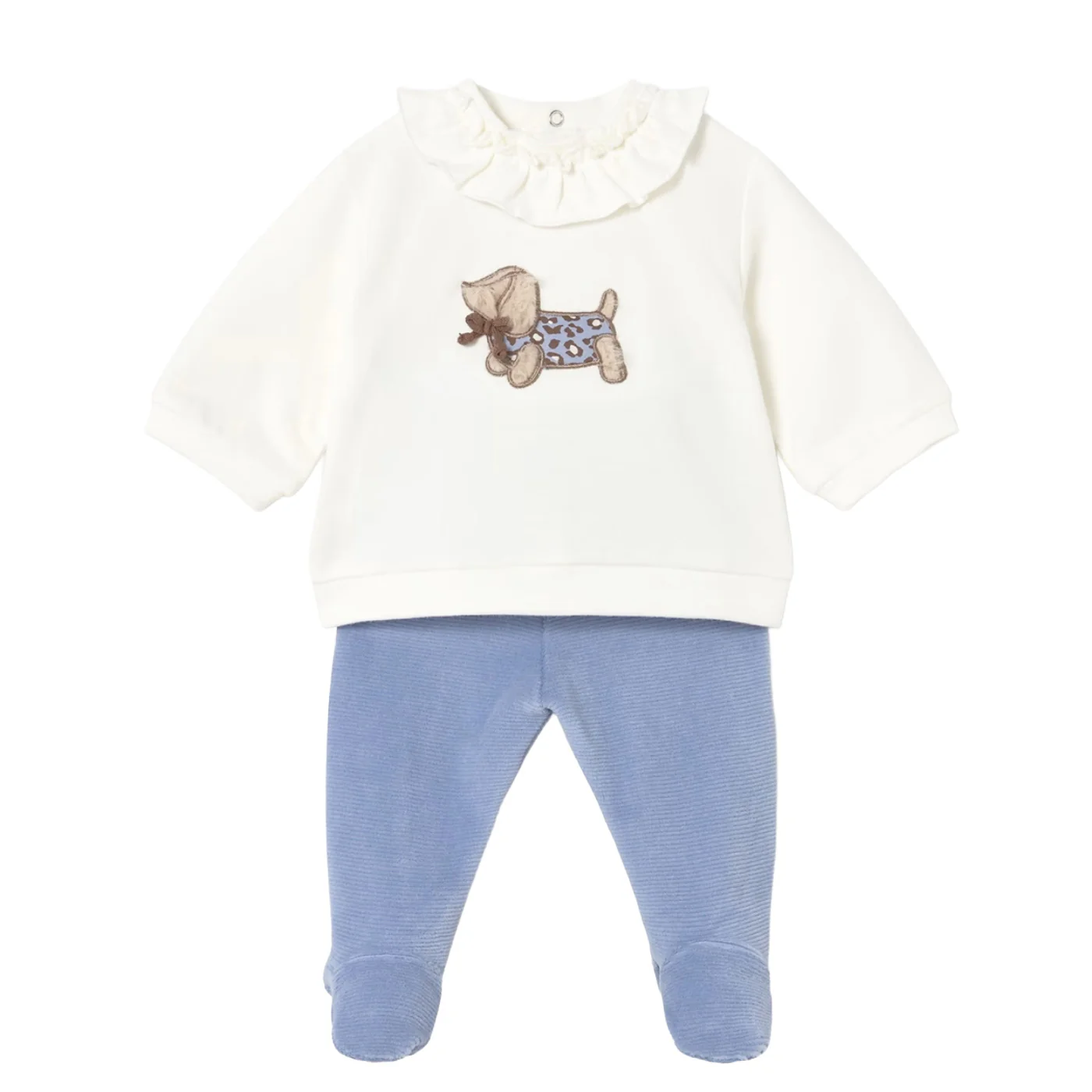 Mayoral completo due pezzi neonata in cotone caldo panna celeste