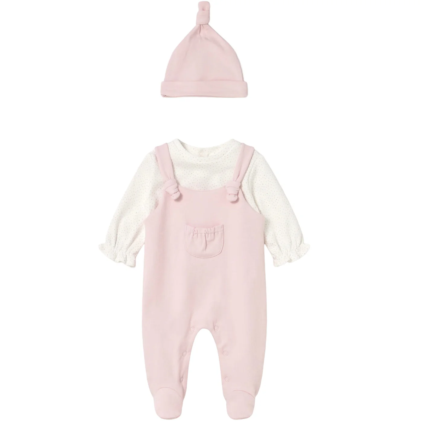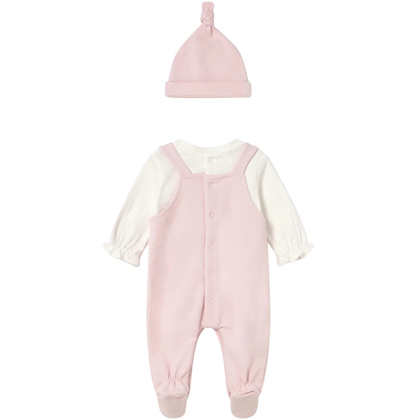 Mayoral completo due pezzi neonata in caldo cotone rosa ecrรน Tutina maniche lunghe con finta salopette Chiusura entrogamba e sul retro con bottoni a pressione Cappello con fioccoComposizione: 99% cotone 1% elastanMade in Cina Collezione Autunno Inverno Vestibilitร :Taglia Etร