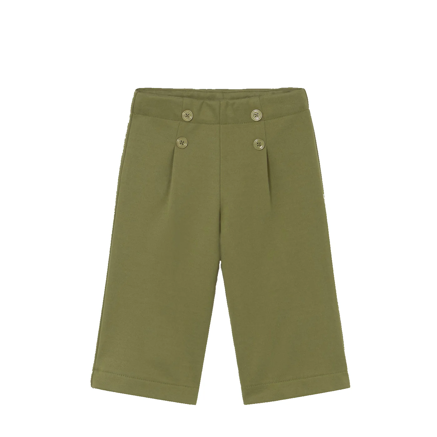 Mayoral pantalone neonata in twill verde Gamba larga Vita elastica Dettagli bottoni frontaliComposizione: 88% poliestere 10% viscosa 2% elastanMade in IndiaCollezione Autunno Inverno Vestibilitร :Taglia Etร