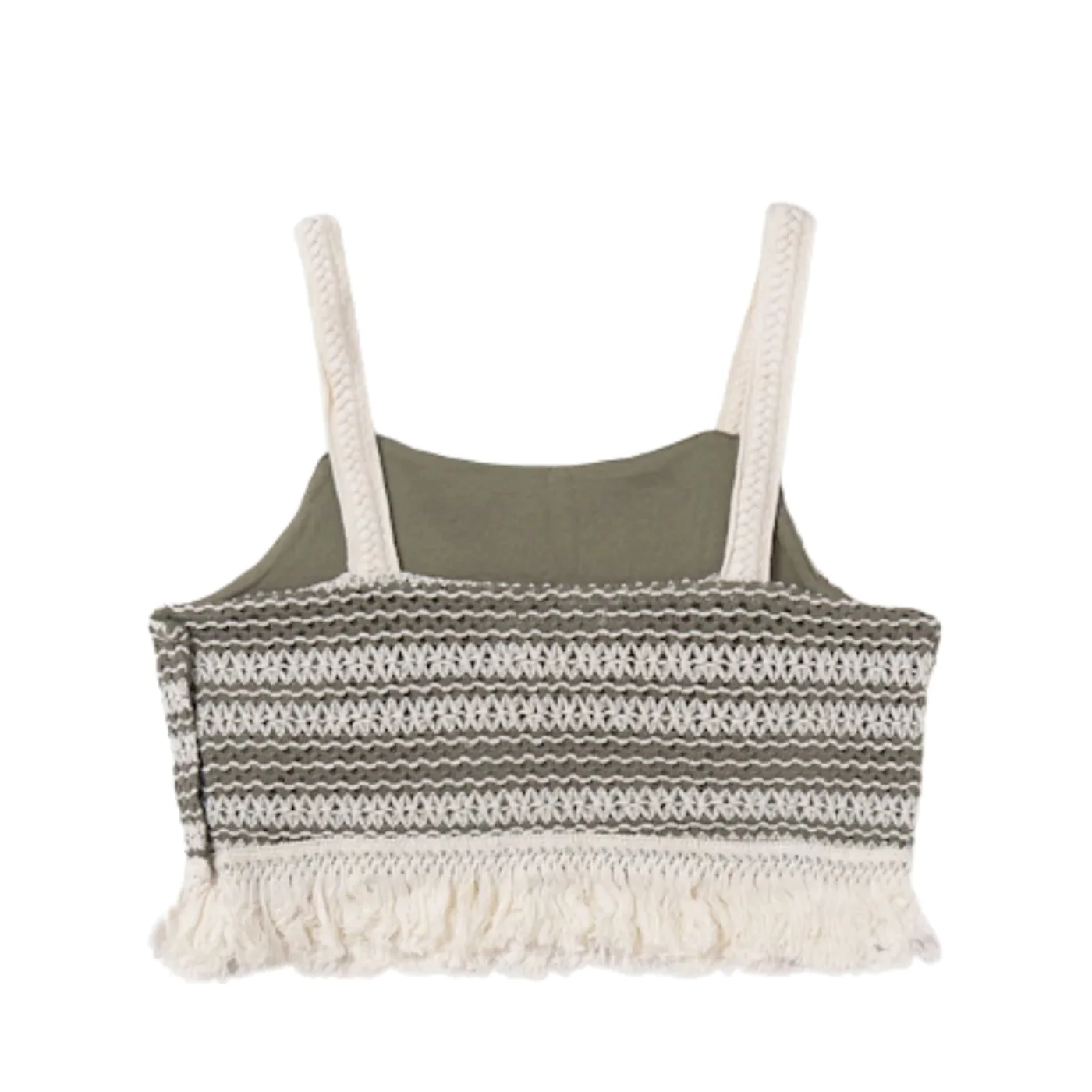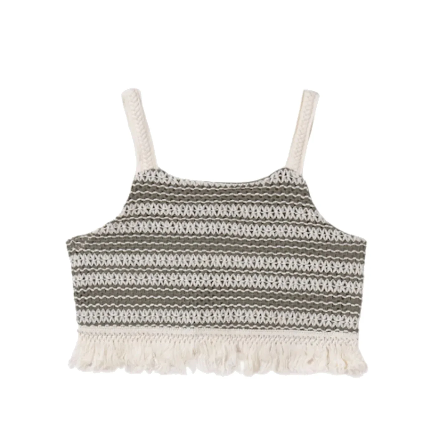 Mayoral top croquet ragazza panna verde con dettaglio fondo con frangeComposizione: 85% poliestere 15% cotoneMade in IndiaCollezione Primavera Estate Vestibilitร :Taglia Etร