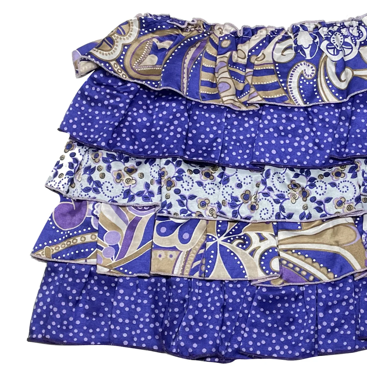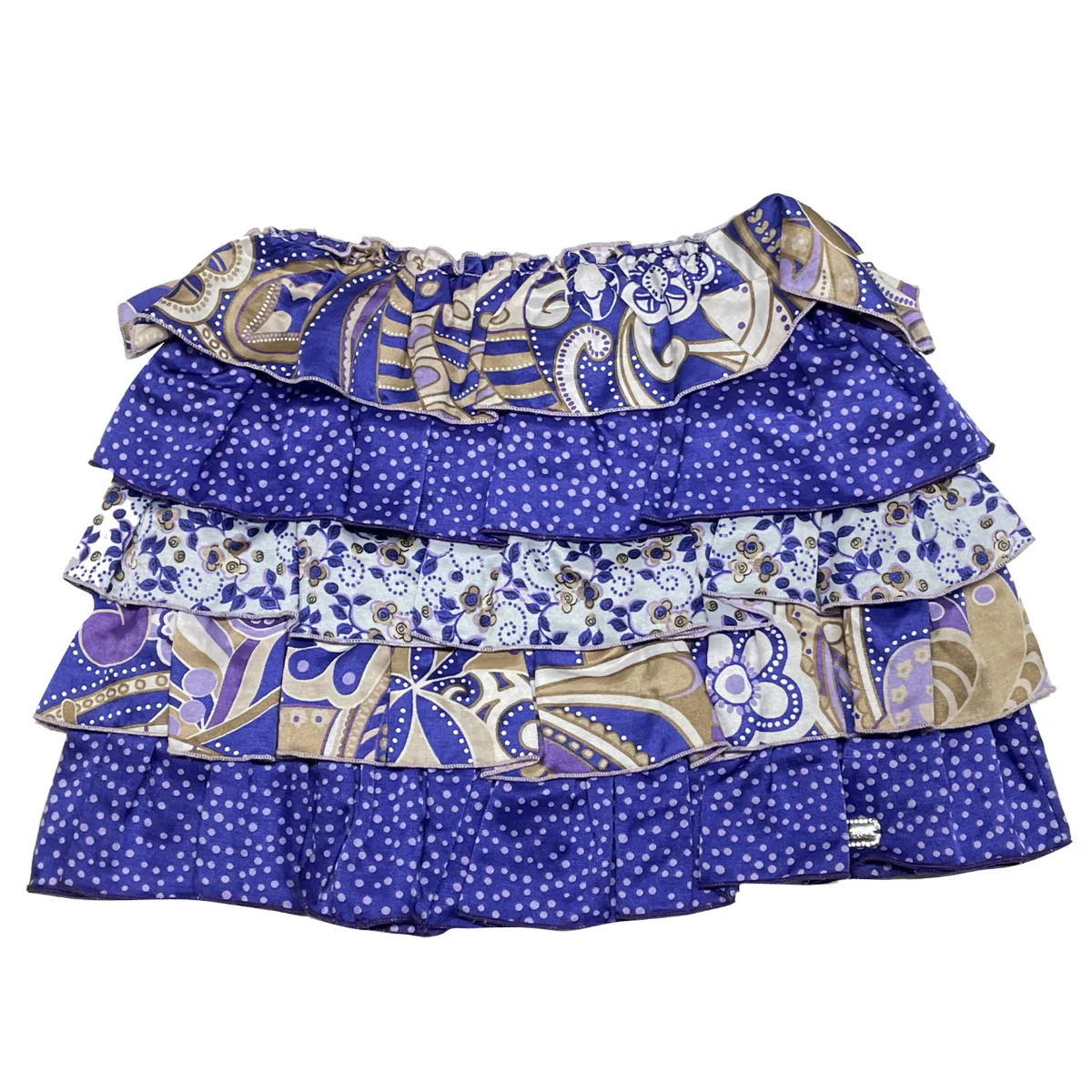 Miss Grant gonna baby misto seta viola fantasia Vita elastica a balze Composizione: 45% cotone 30% seta 14% acetato 1% viscosaMade in TunisiaCollezione Primavera Estate Vestibilitร :Taglia Etร