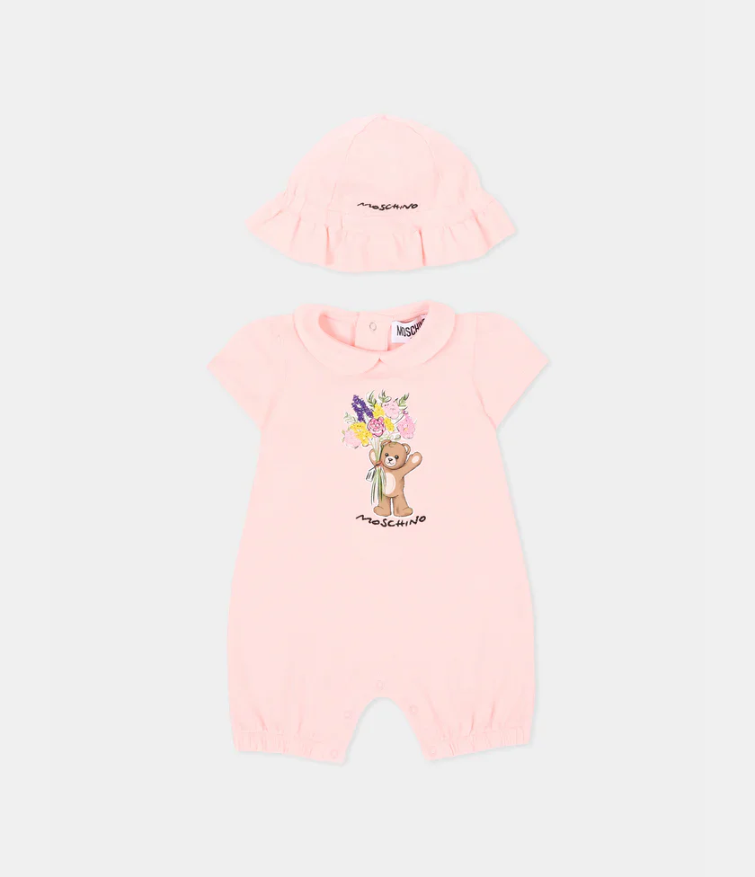 Moschino set pagliaccetto+cappello neonata nuova collezione primavera estate