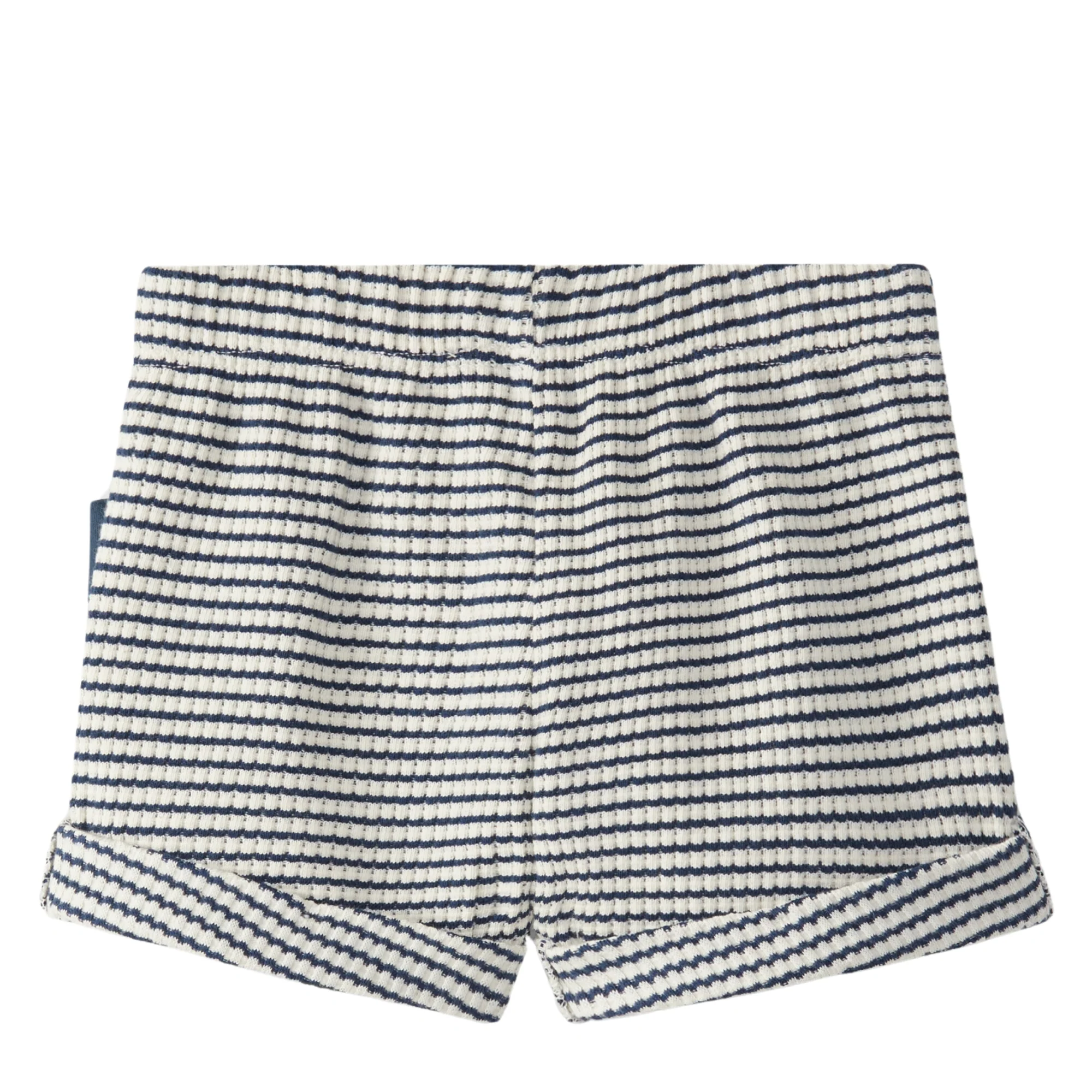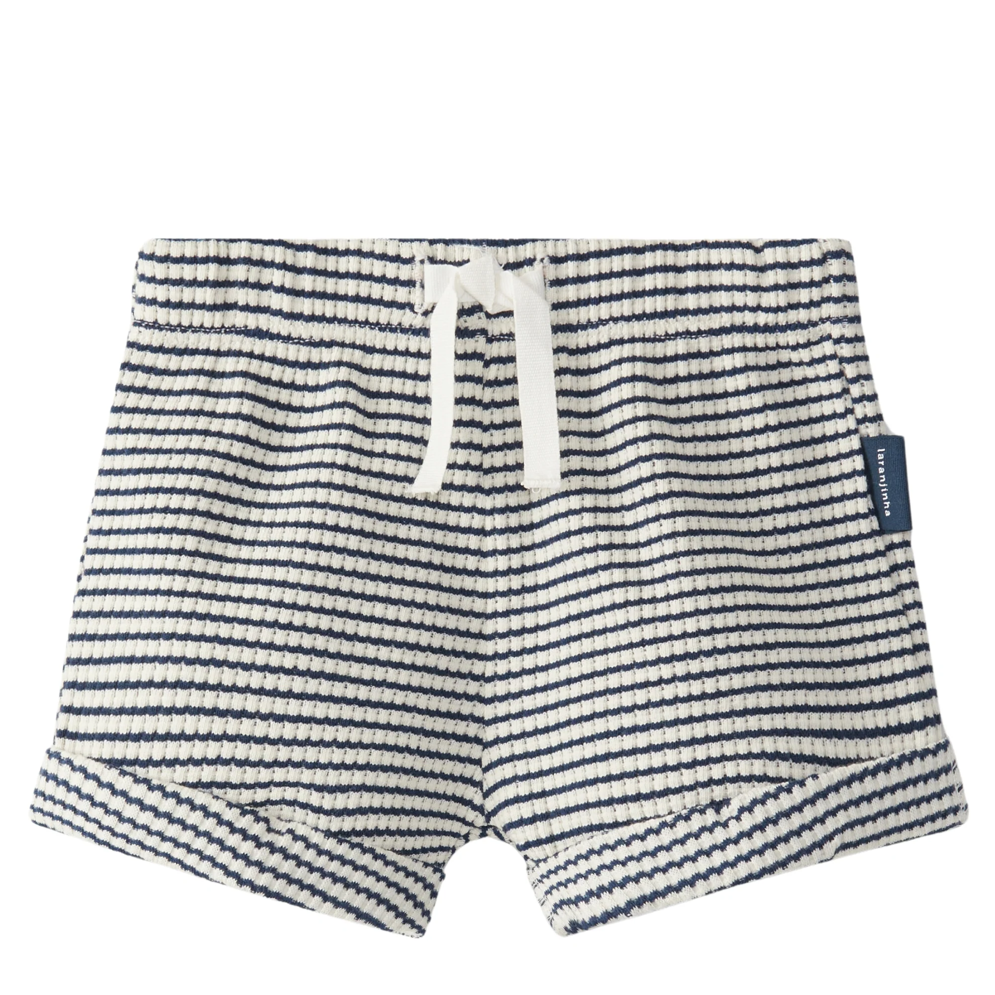 Pantaloncini in jersey rigato, con risvolto sull’orlo, vita elasticizzata e fiocco decorativo.