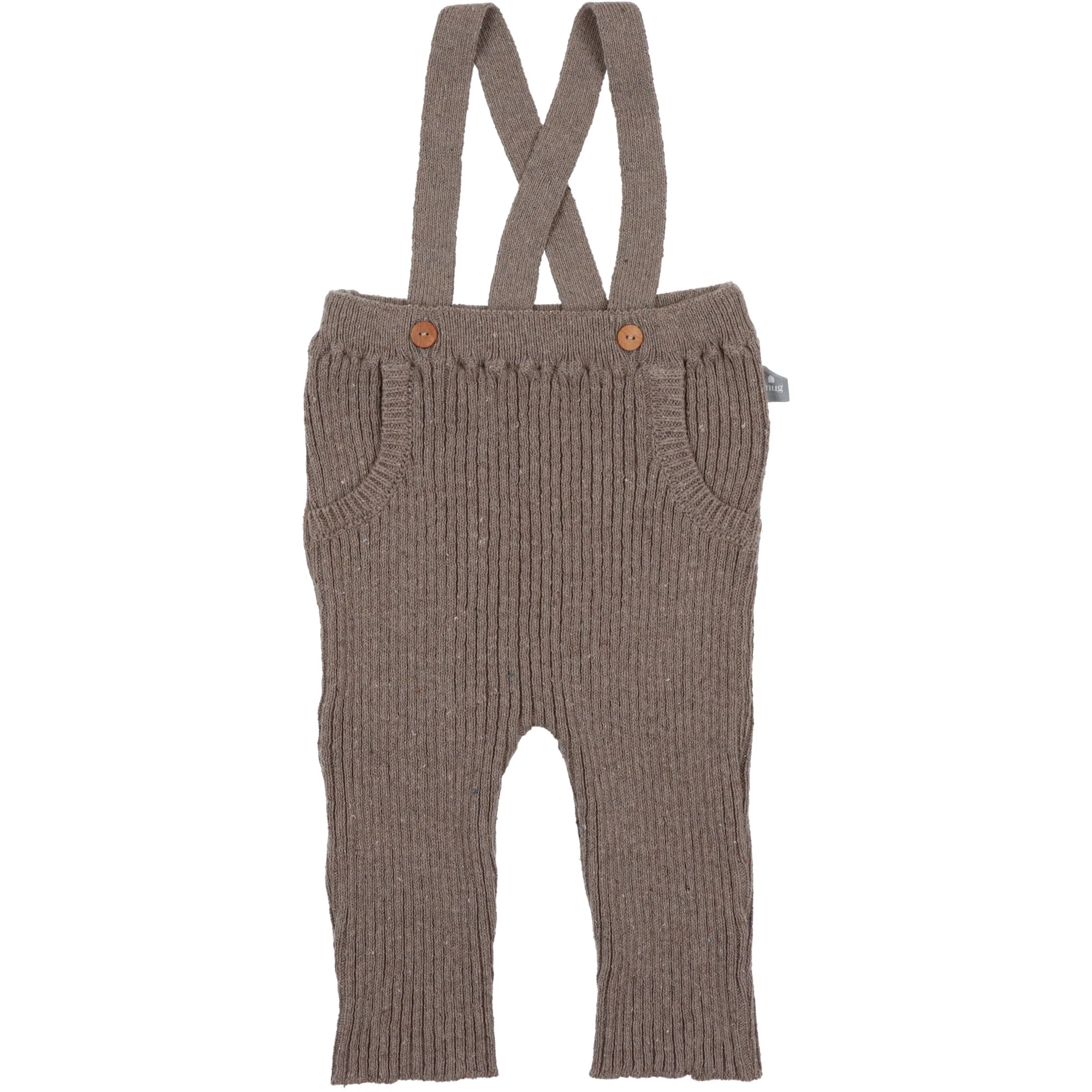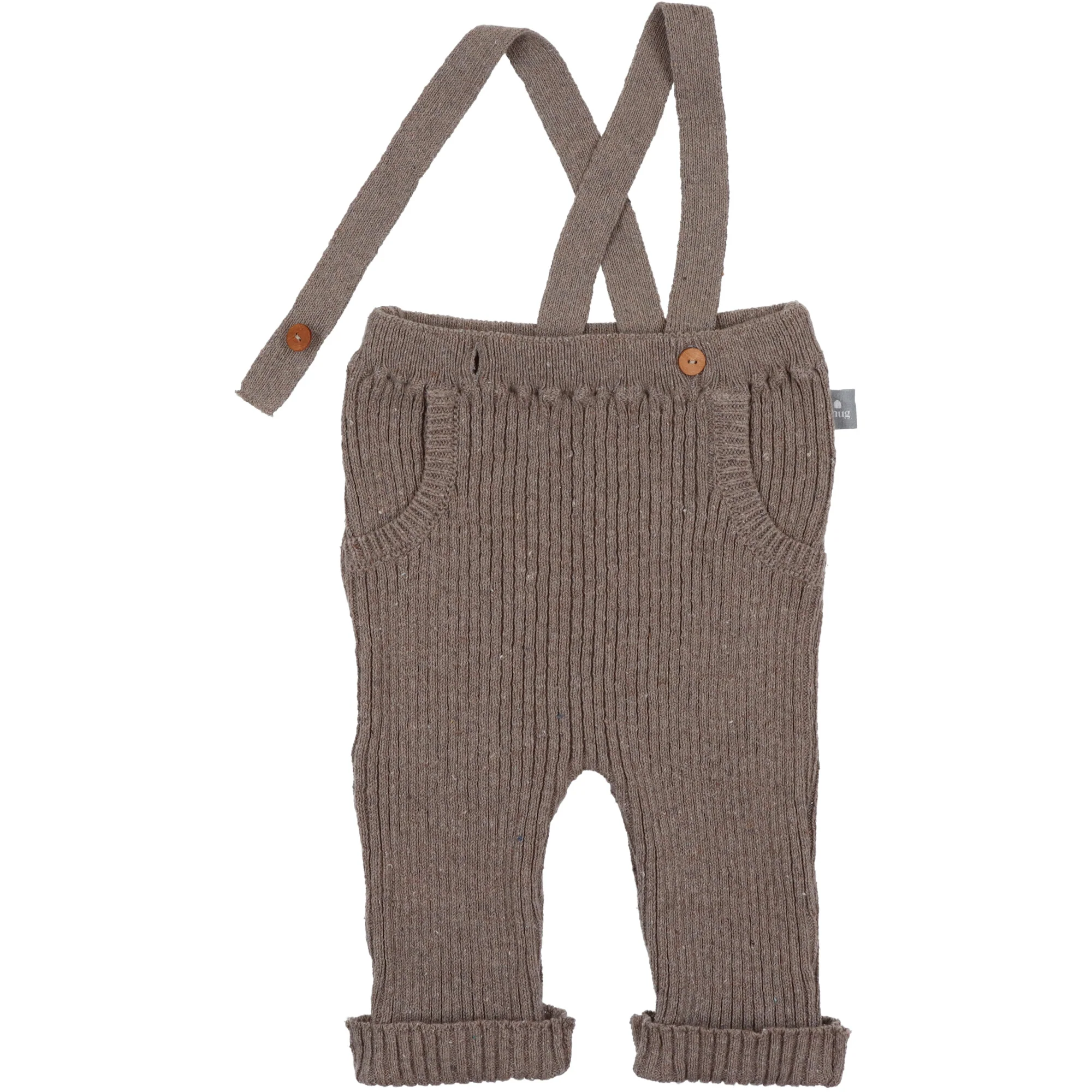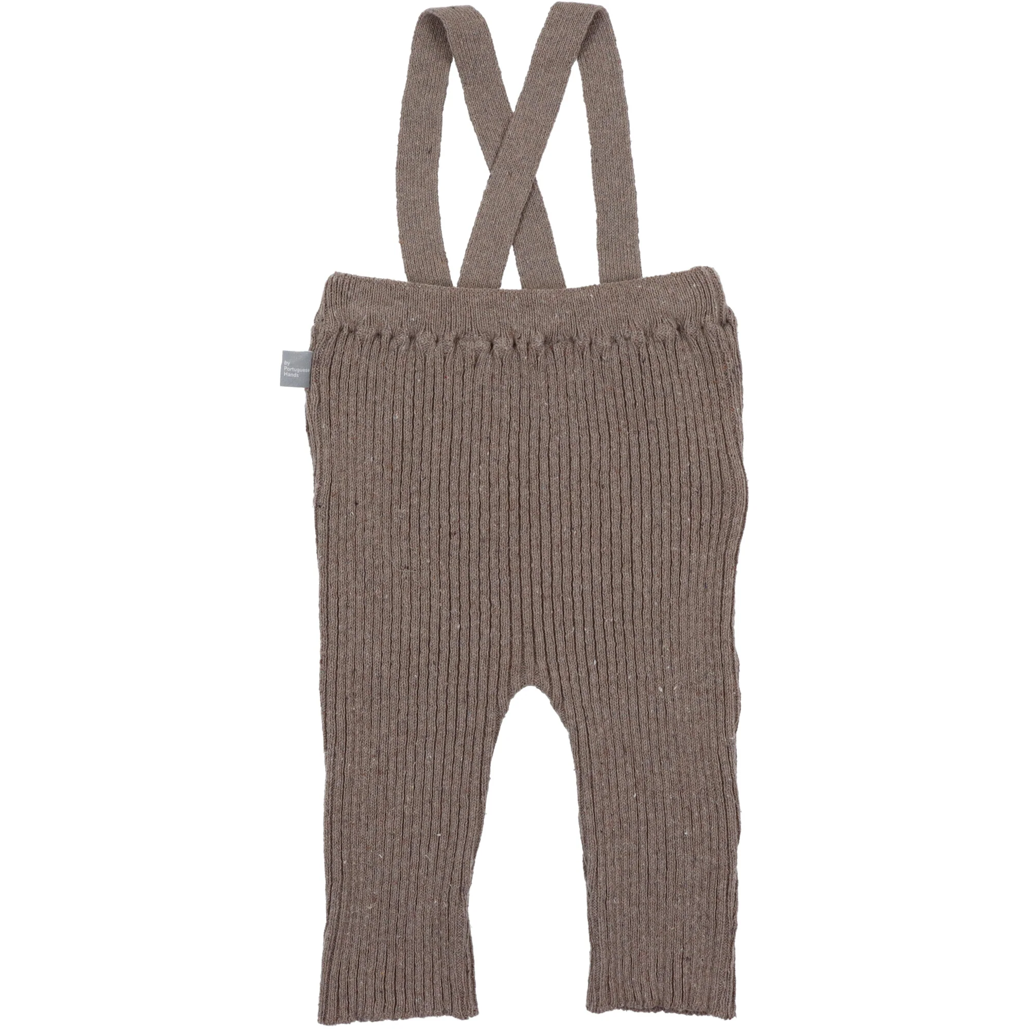 Pantaloni in maglia a costine con cotone riciclato. Si allaccia alle spalline con bottoni in legno. Composizione: 80% cotone riciclato, 15% cotone, 5% altre fibre. Cura: lavare a mano, no candeggio, si asciugatrice, si puรฒ stirare.