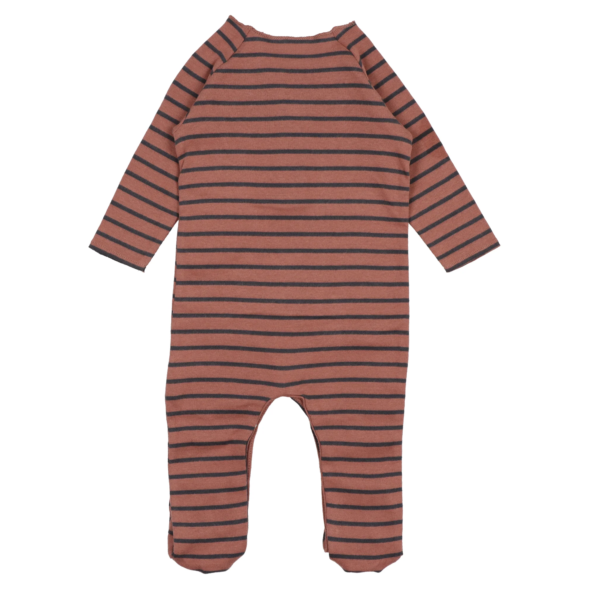 Dettaglio: realizzato in maglina di cotone biologico, collo rotondo, con piede, stampa sul petto e apertura frontale con bottoni a pressione in metallo senza nichel.
