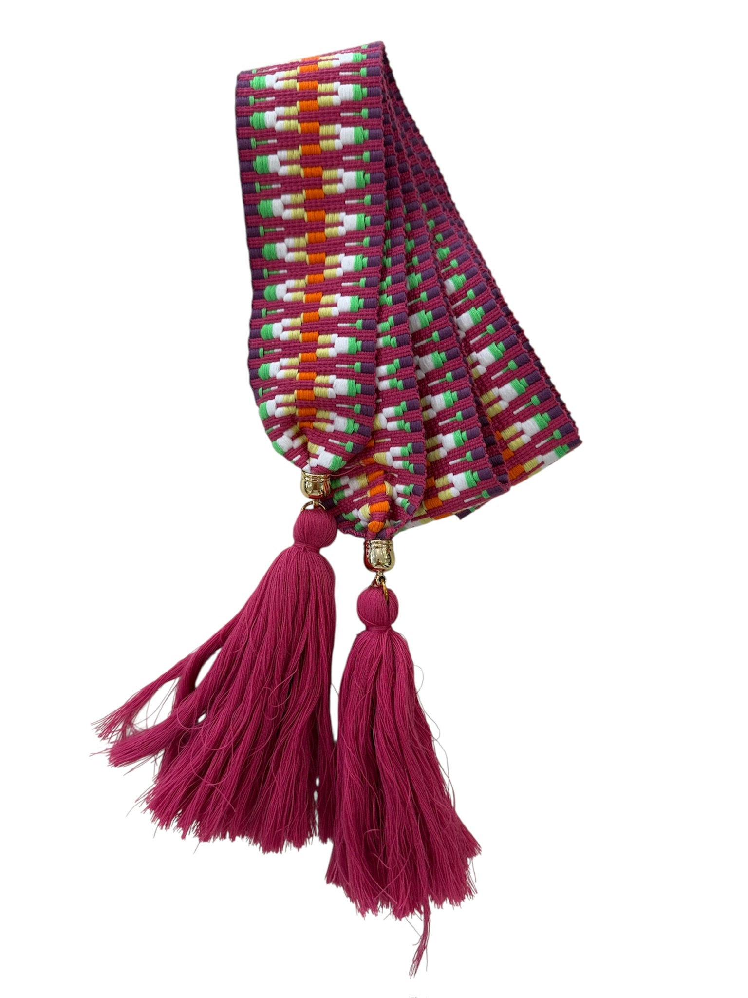 Cintura in passamaneria di cotone colorata con fiocchi fuxia alle estremitÃ