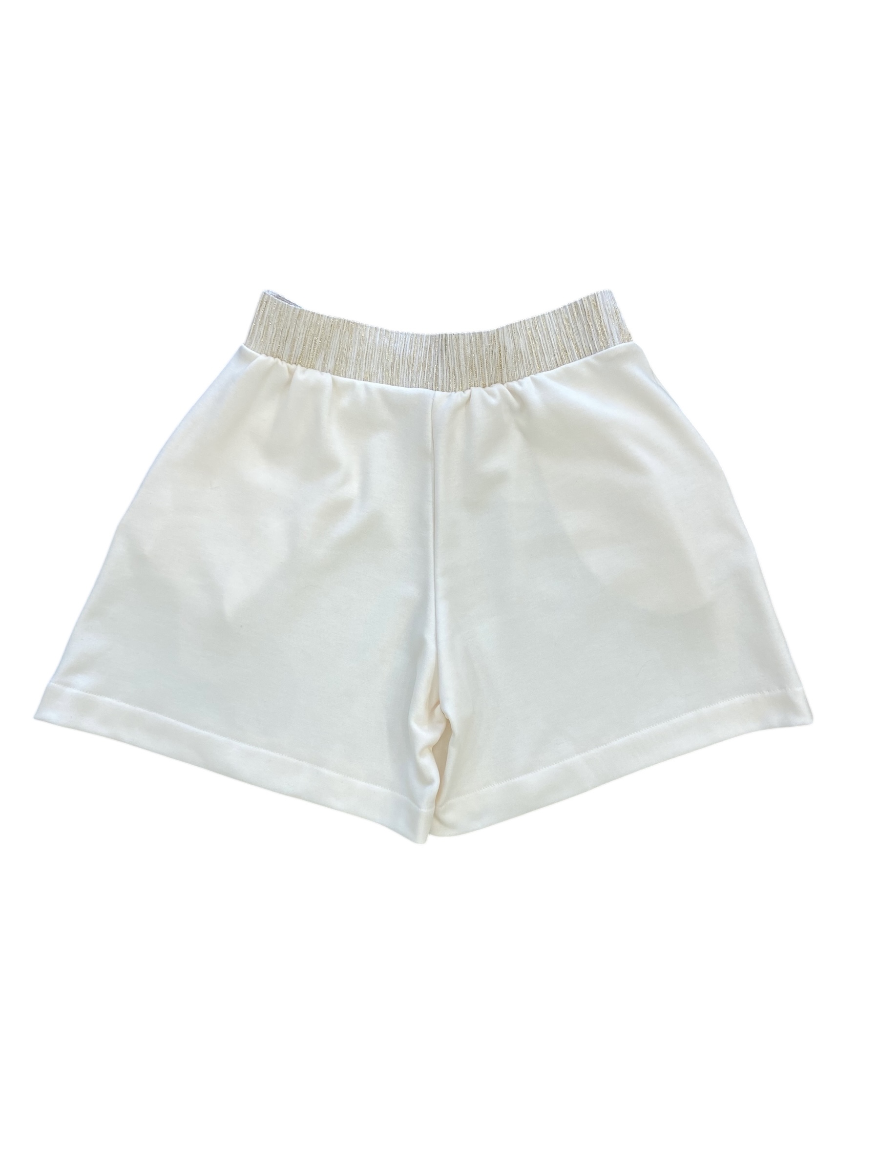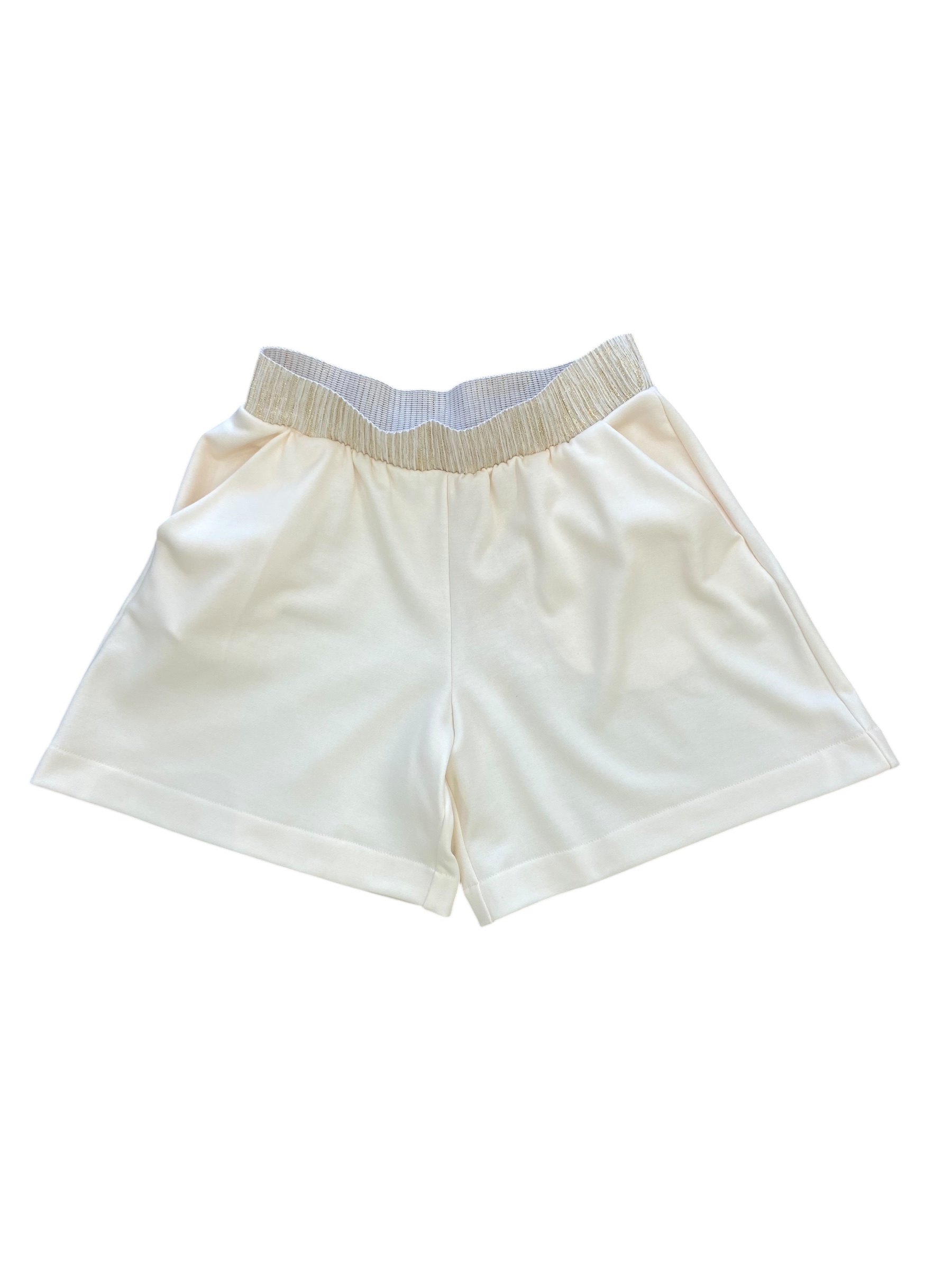 Shorts felpa avorio elastico in vita, tasche laterali.