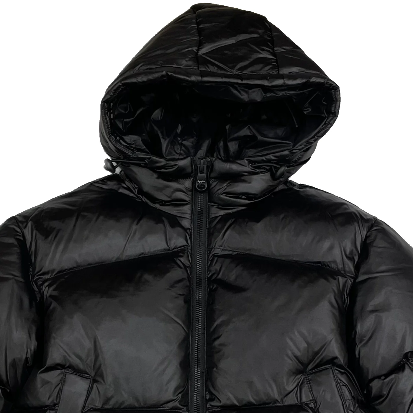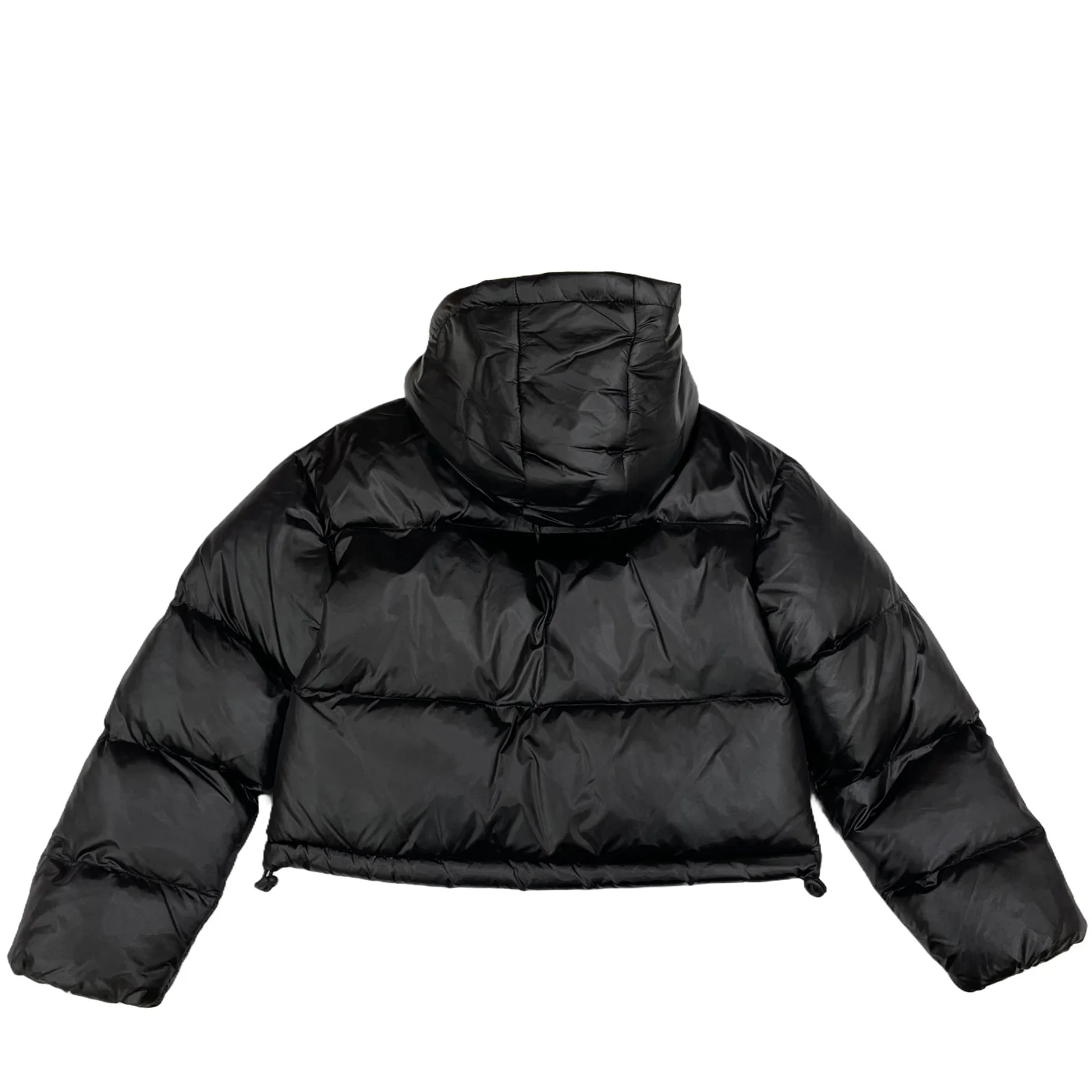 Refrigiwear giubbino trapuntato bambina nero Modello corto Cappuccio fisso Chiusura centrale logata Tasche a filo Patch logo su manicaComposizione: 100% poliestereMade in CinaCollezione Autunno Inverno Vestibilitร :Taglia Etร