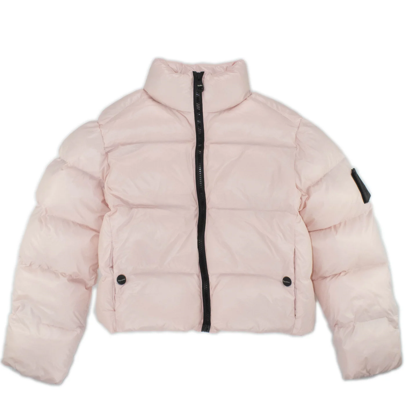 RefrigiWear giubbino trapuntato bambina rosa Modello crop Water protection Chiusura con zip centrale Tasche con bottoni logati Patch logo su manicaComposizione: 100% nylon imbottitura 100% poliestereMade in CinaCollezione Autunno Inverno
