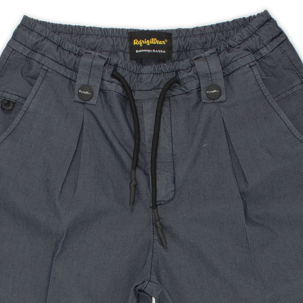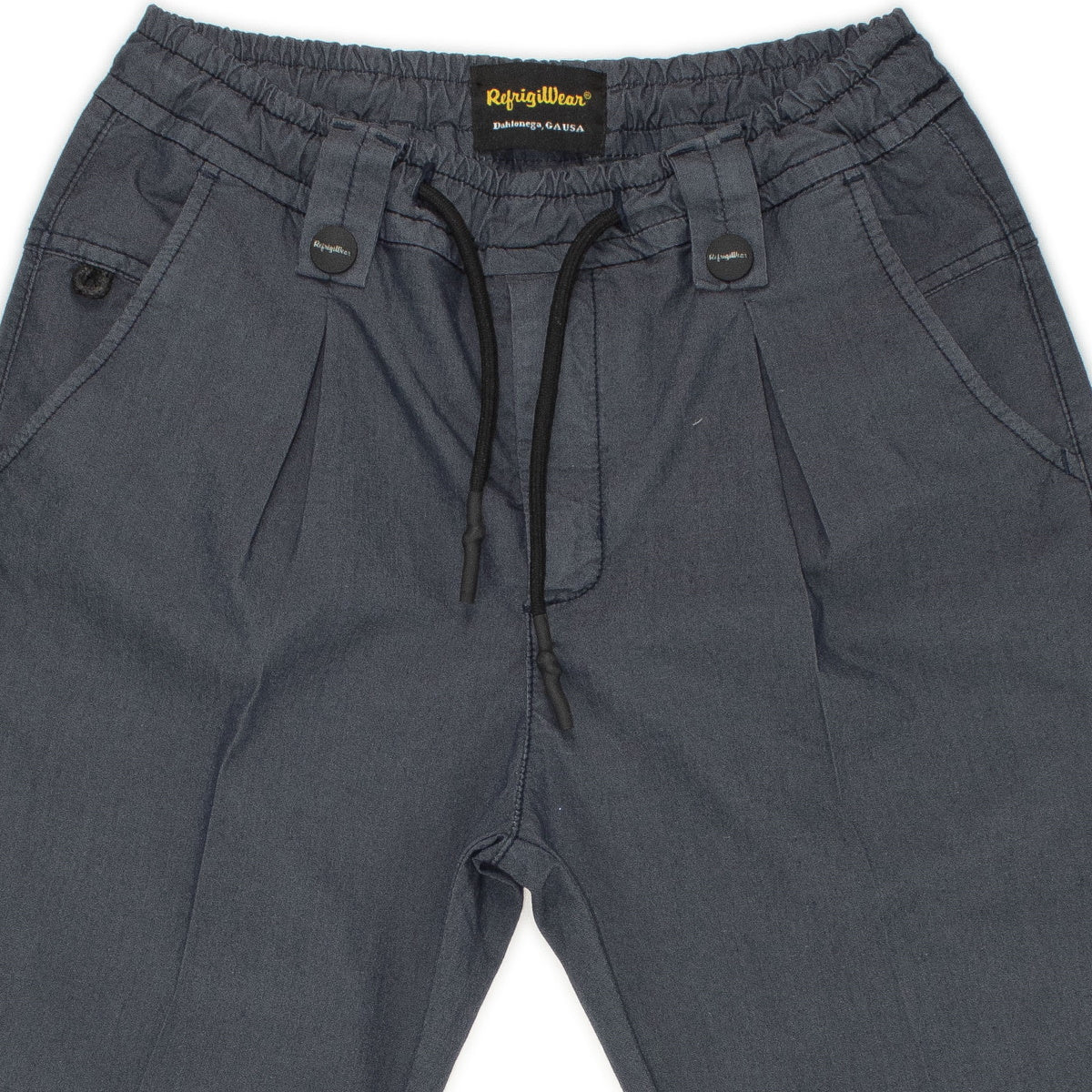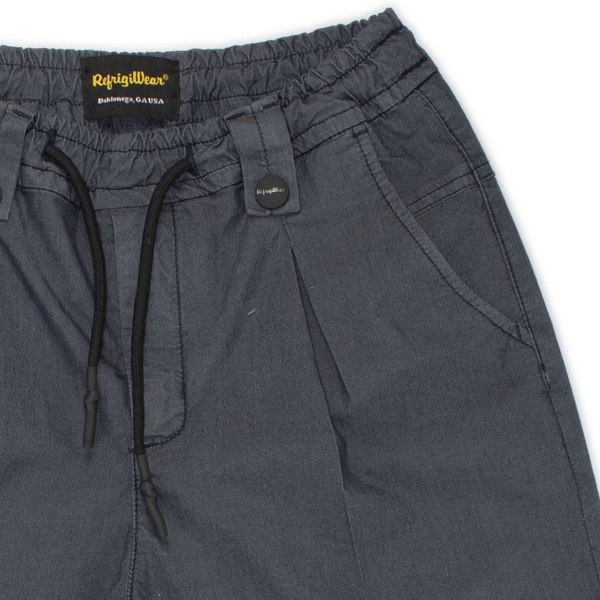 Refrigiwear pantalaccio cotone bambino blu Vita elastica con coulisse regolabile Tasche America Patch logo sul retroComposizione: 67% cotone 30% poiestere 3% elastan Made in CinaCollezione Primavera Estate Vestibilitร :Taglia Etร