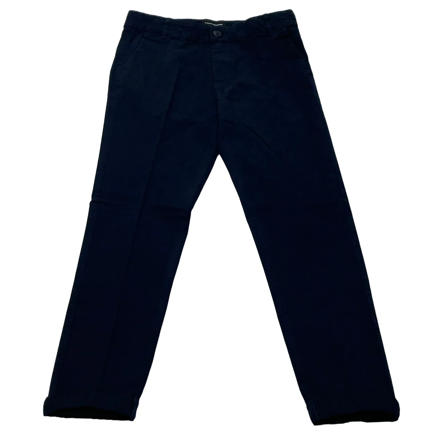 RefrigiWear pantalone chino bambino in cotone bluVita con passantiChiusura con zip e bottoneTasche a filoComposizione: 97% cotone 3% elastanMade in CinaCollezione Primavera Estate Vestibilitร :Taglia Etร