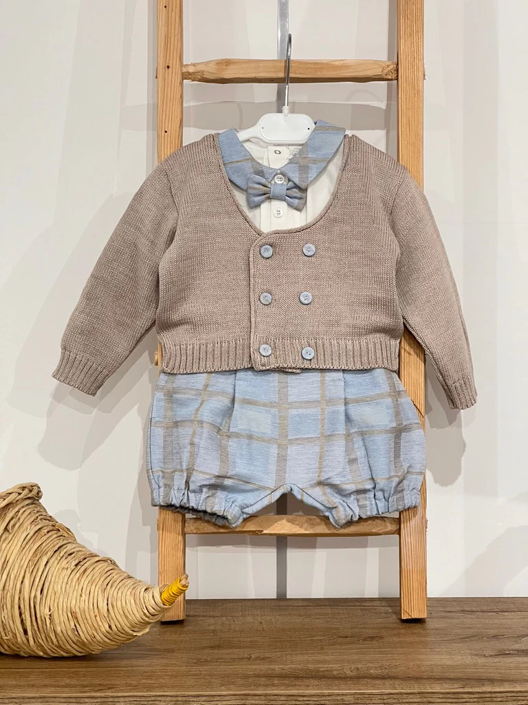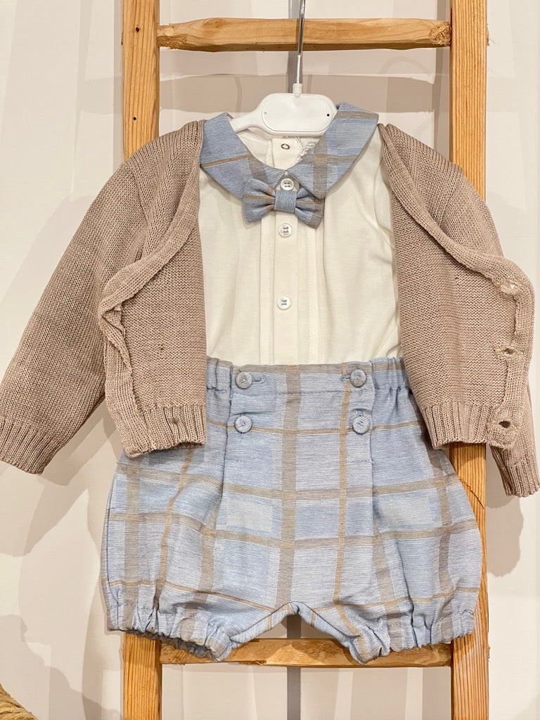 Salopette con body + cardigan in lana-Prodotto Artigianale;-Made in Italy