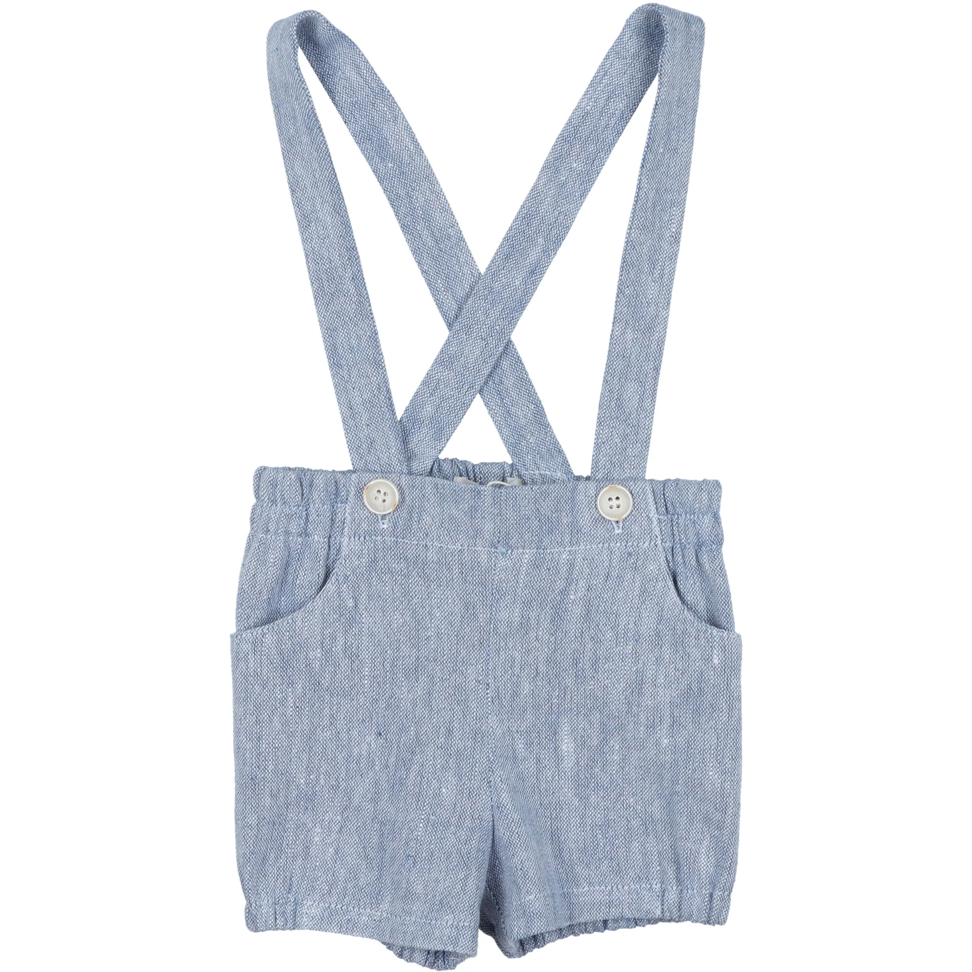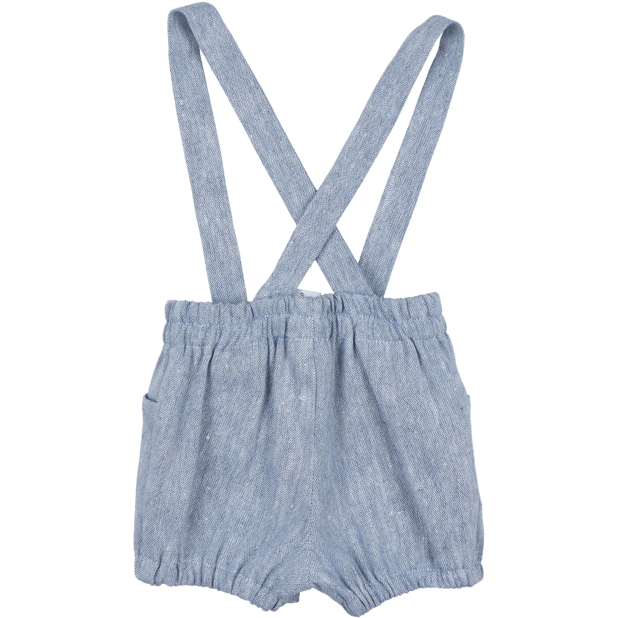 Short in misto lino effetto denim con bretelle fissate davanti con bottoni, tasche aperte, elastico in vita e sull’orlo dietro per una migliore vestibilitร . Composizione: 66% lino, 21% cotone, 3% altre fibre.Cura: lavaggio ad acqua, no candeggio, no asciugatrice, si puรฒ stirare.