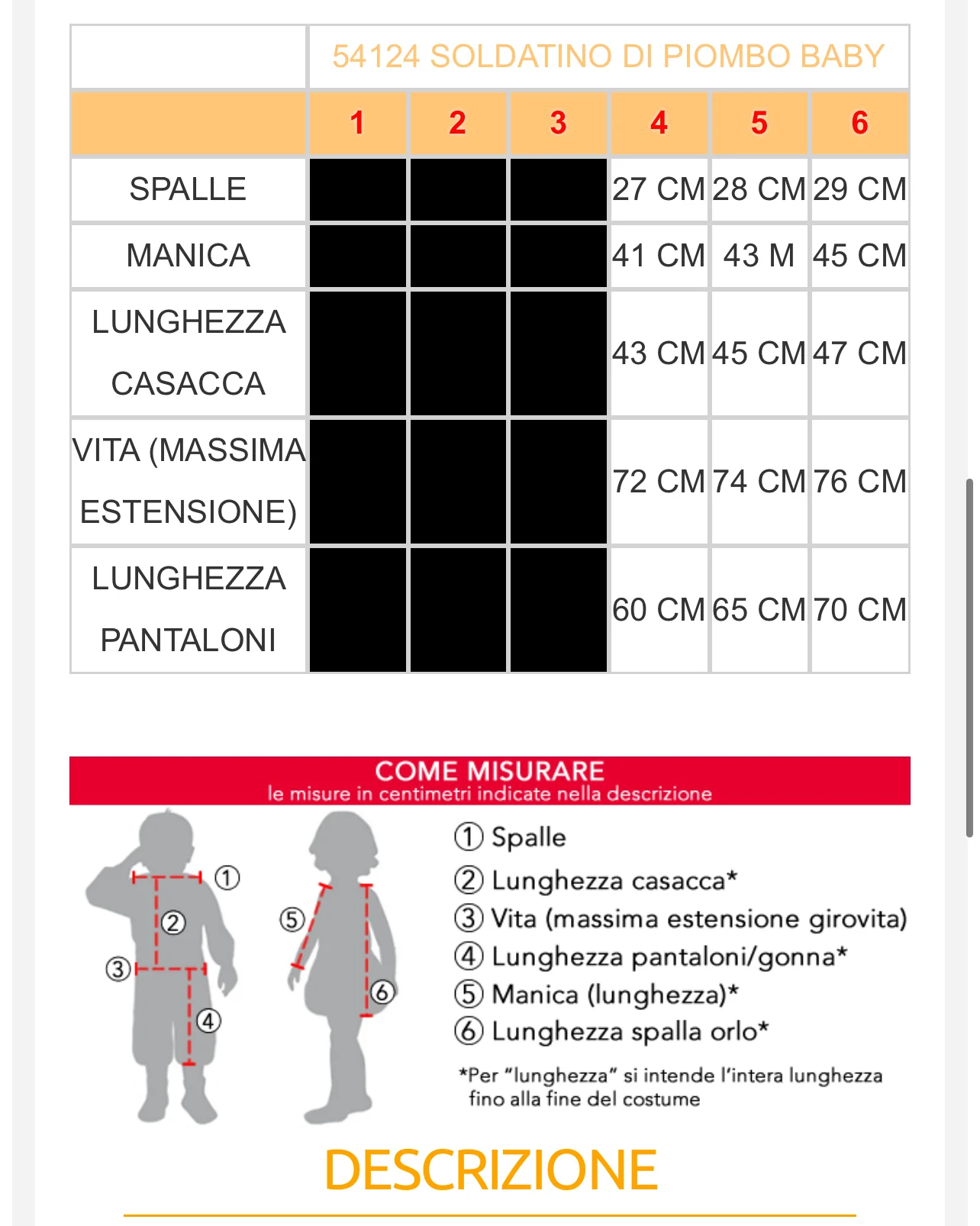 GRAZIOSO ABITO ” SOLDATINO DI PIOMBO BABY “