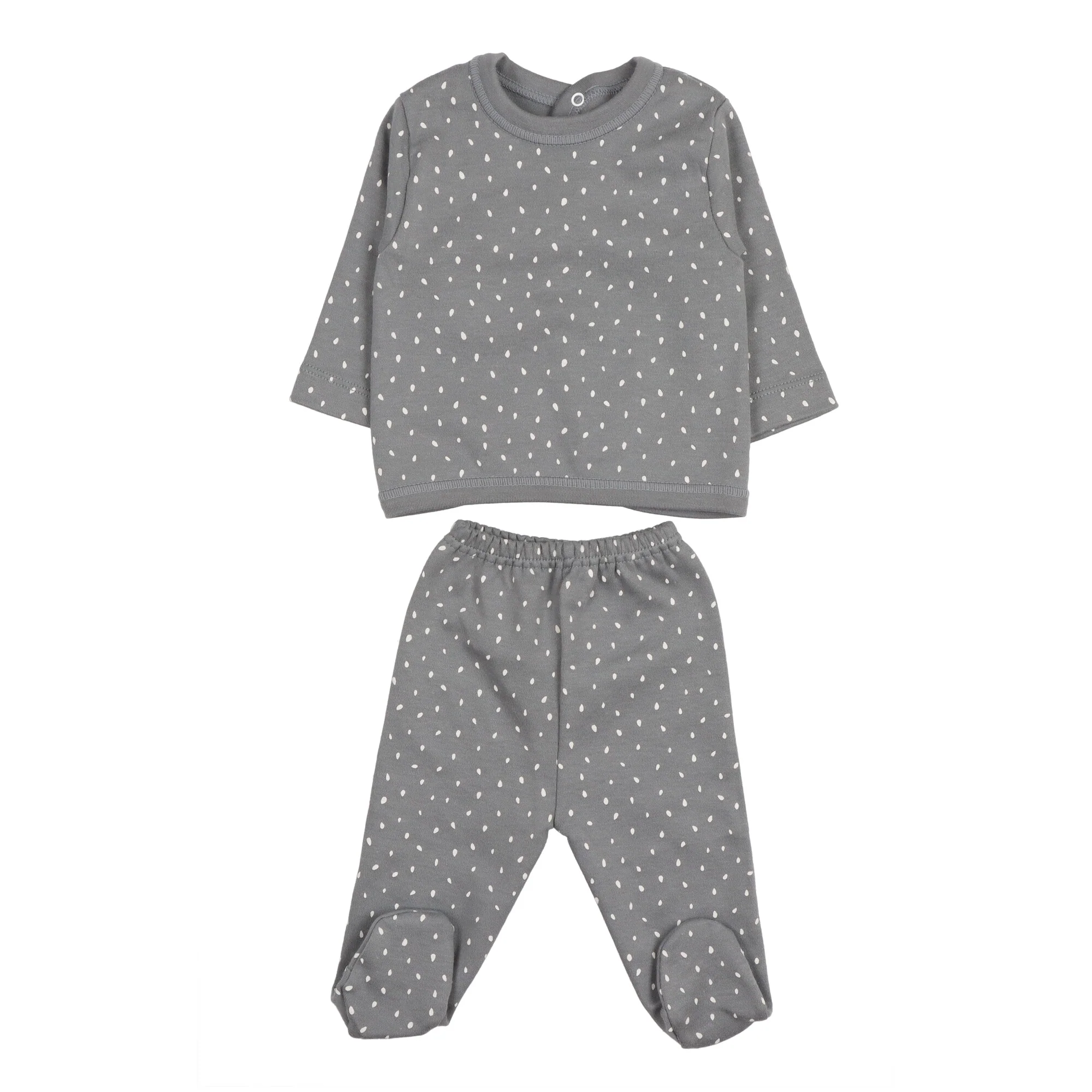 DETTAGLIOt-shirt chiusura dietro con due bottoni a pressione, maniche lunghe, ghettina con elastico morbido in vita, stampa bianca su fondo grigio.Composizione: 100% cotone.Cura: lavare in lavatrice a 30ยฐ, non lavare a secco, no asciugatrice, si puรฒ stirare.