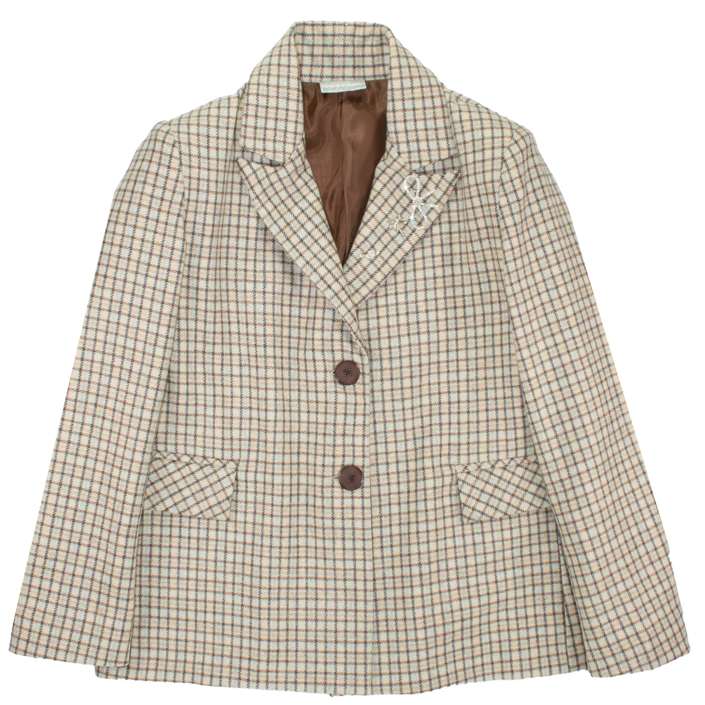 To Be Too giacca a quadri bambina in misto lana beige marrone