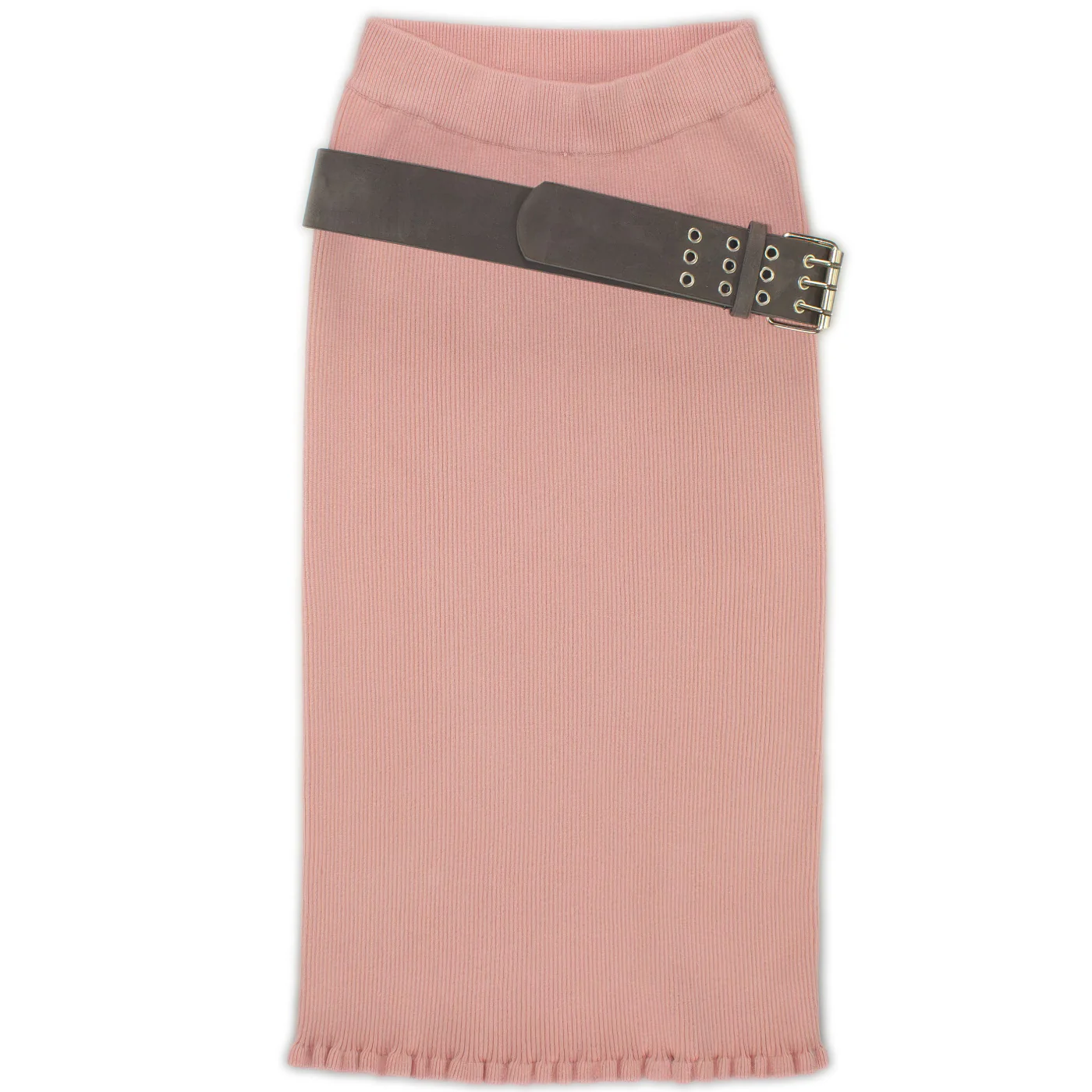 To Be Too gonna lunga a costine con cinturone bambina in misto viscosa rosa Vita elastica Fondo con volant Composizione: 32% acrilico 30% polierstere 20% viscosa 18% nylonMade in CinaCollezione Autunno Inverno Vestibilitร :Taglia Etร