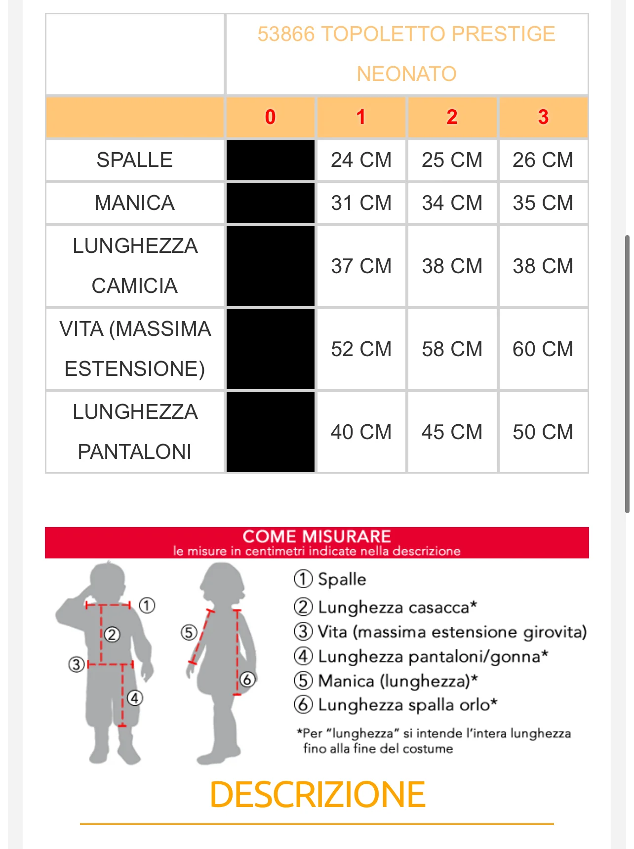 | Taglia | |