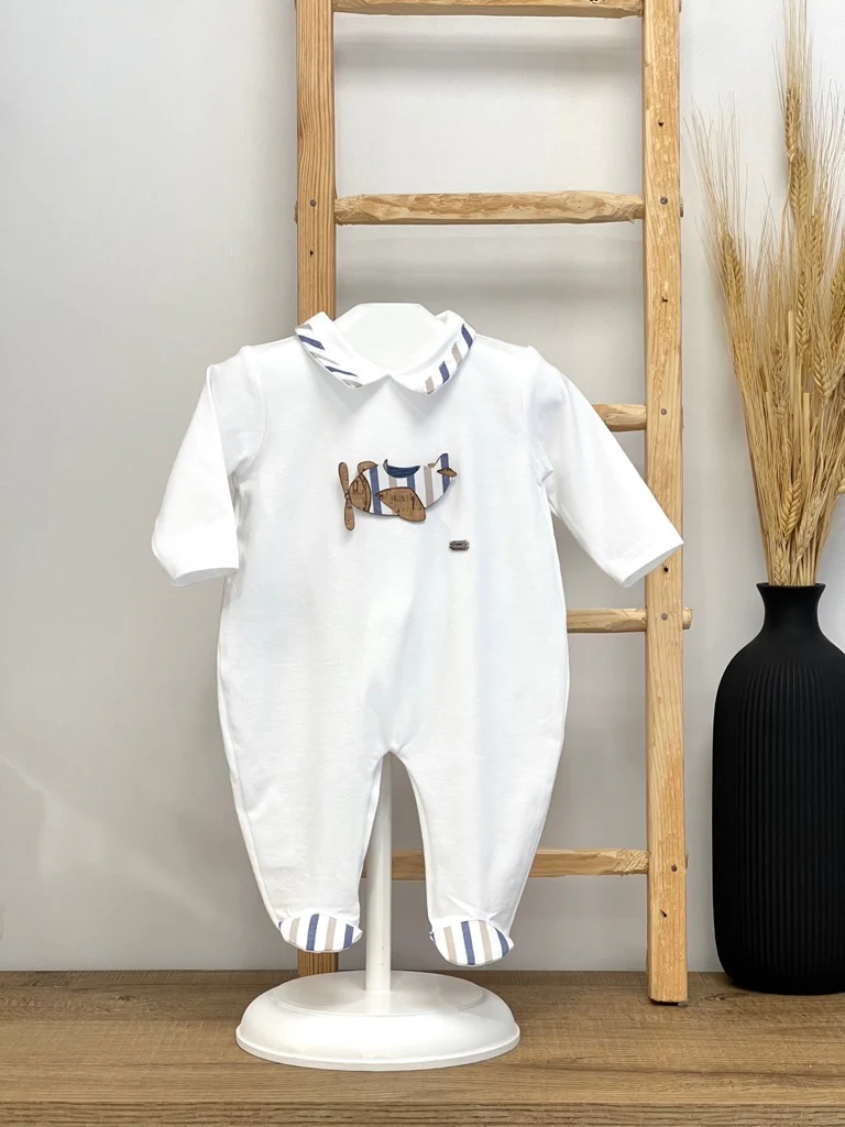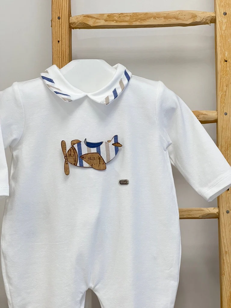 Tutina Neonato con aereoplanino -100% cotone -Made in itlay -Prodotto artigianale