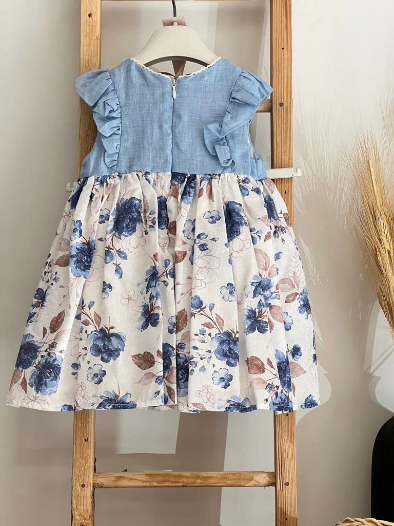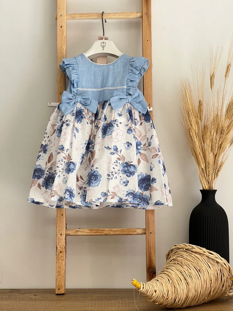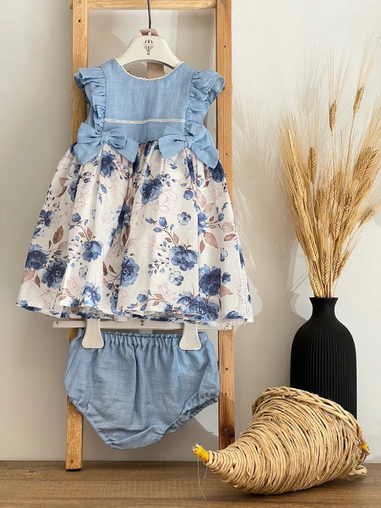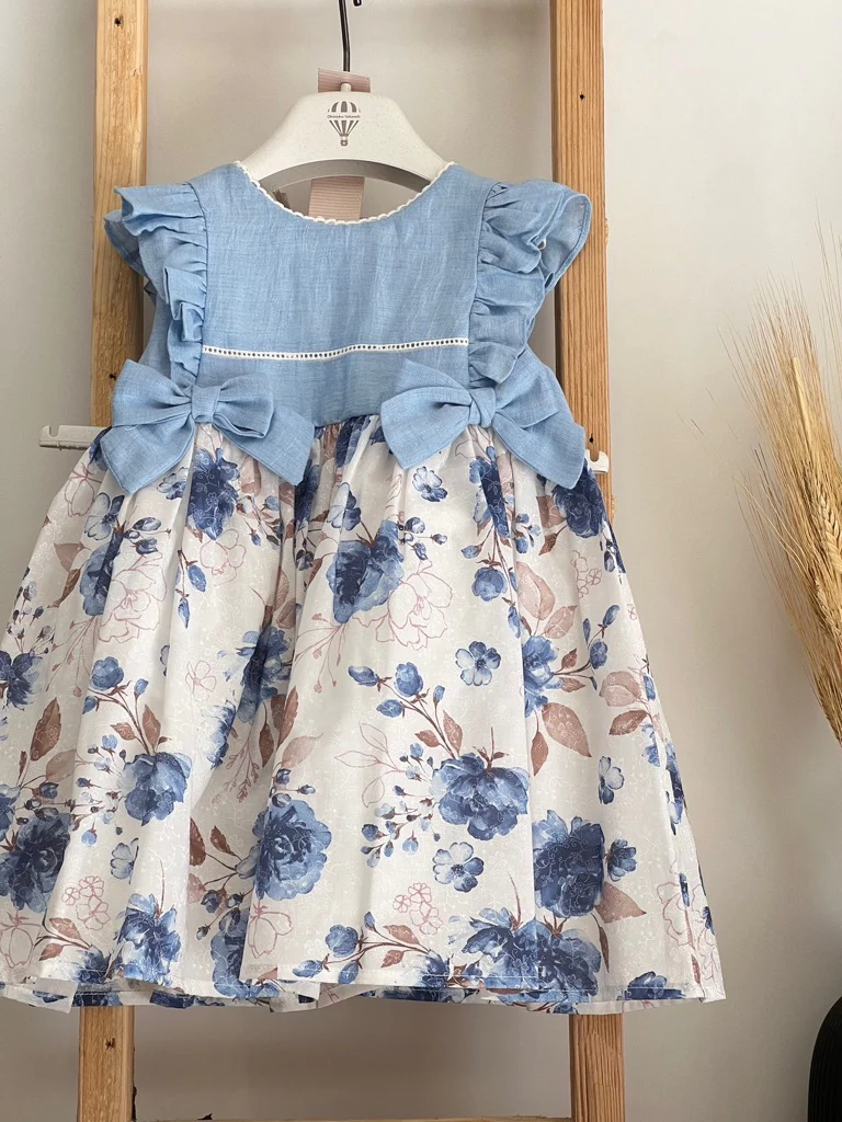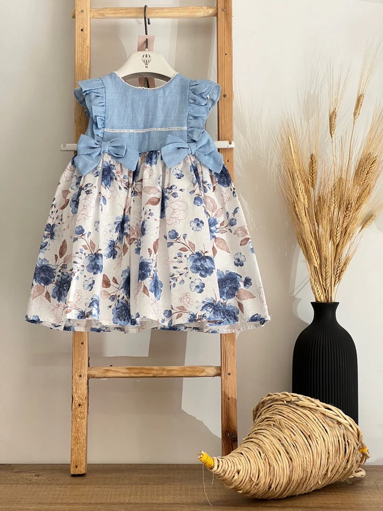 Abitino Bimba in linocon voilร alle maniche e fantasia-Prodotto Artigianale-Made in italy