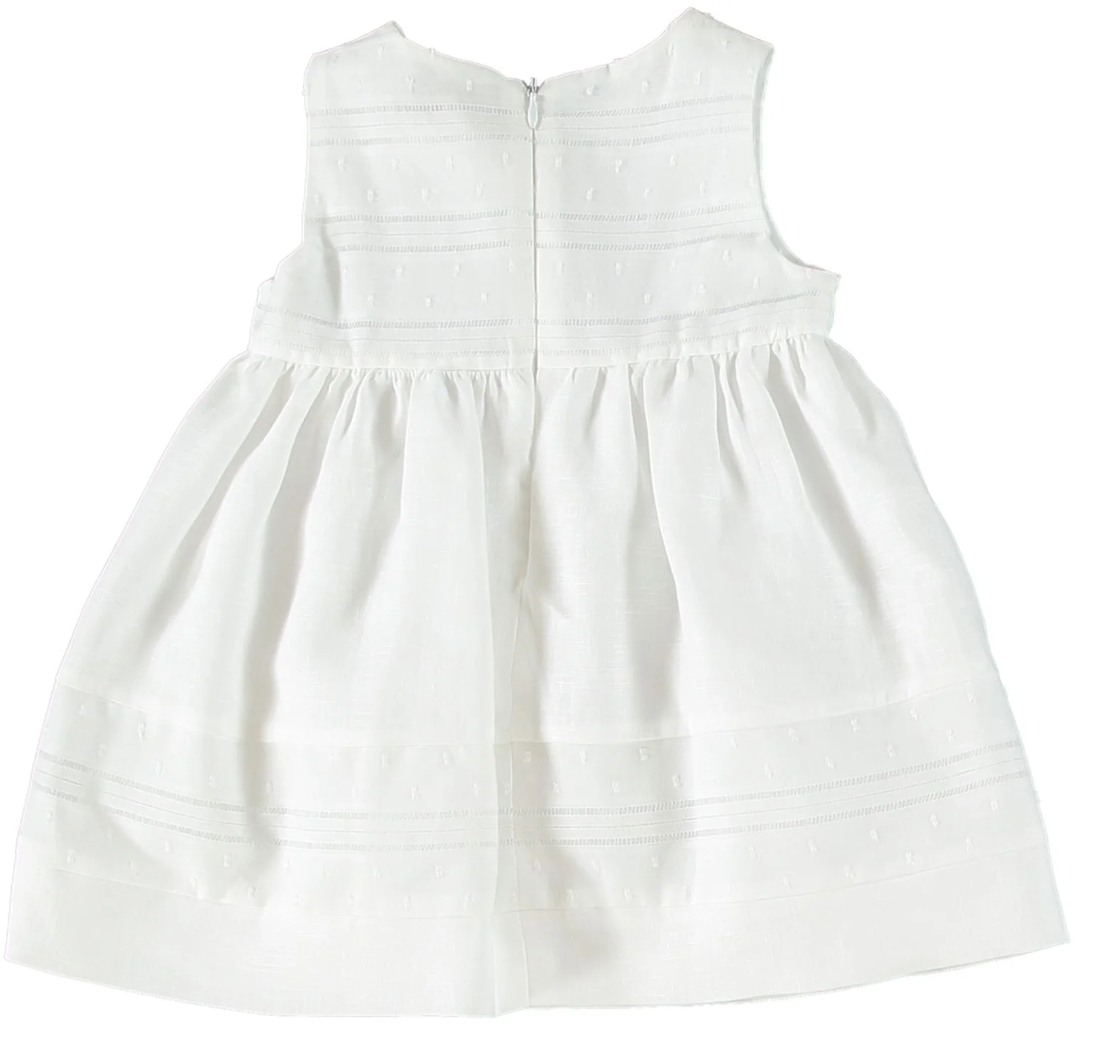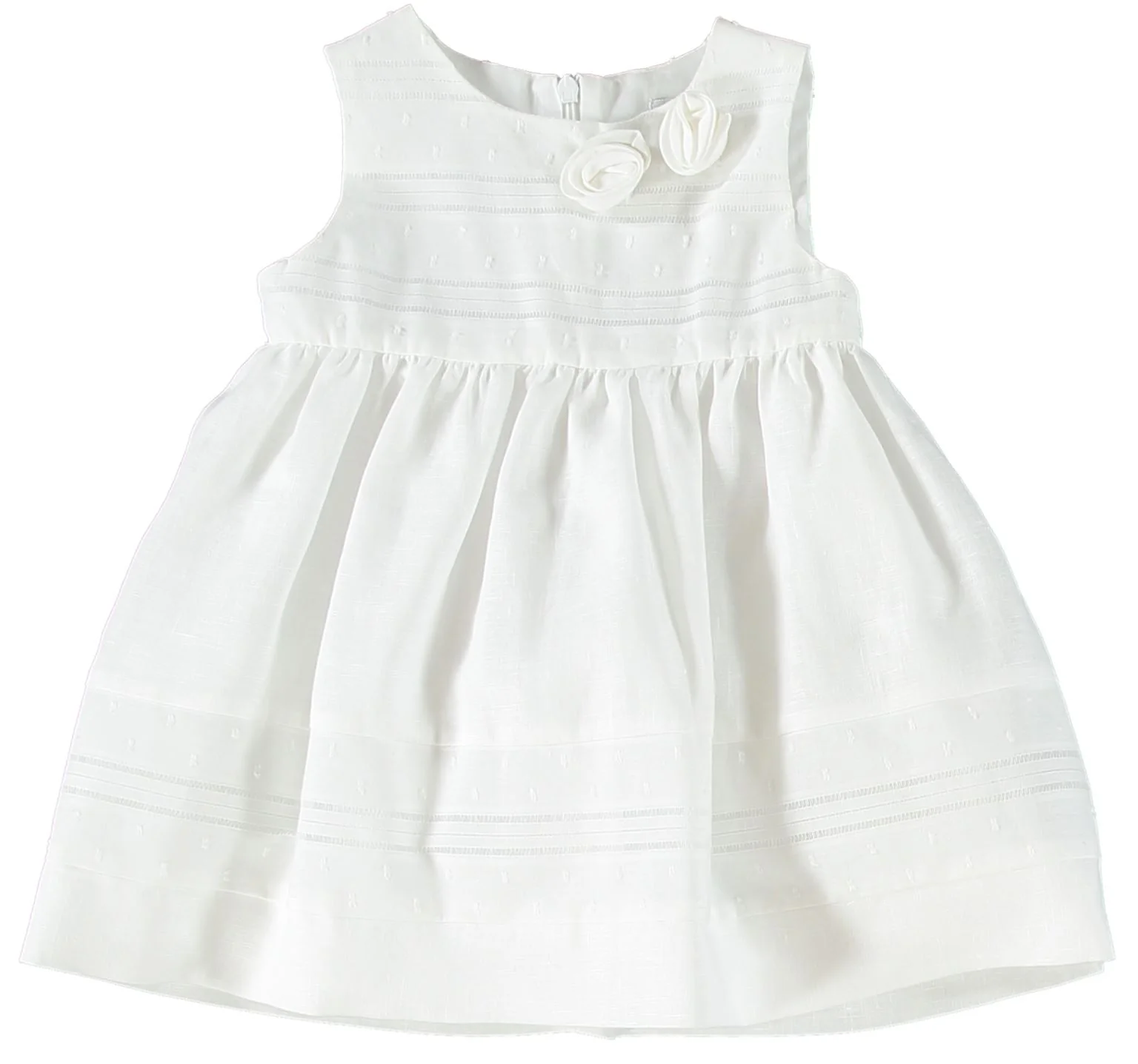 DESCRIZIONE Dettaglio: collo tondo, senza maniche, tinta unita, senza tasche, interno foderato, chiusura sul retro con zip – particolare fiori in tessuto Tessuto: cotone Composizione: 100% cotone Cura: lavare in lavatrice a 30ยฐ, lavare separatamente, ferro medio