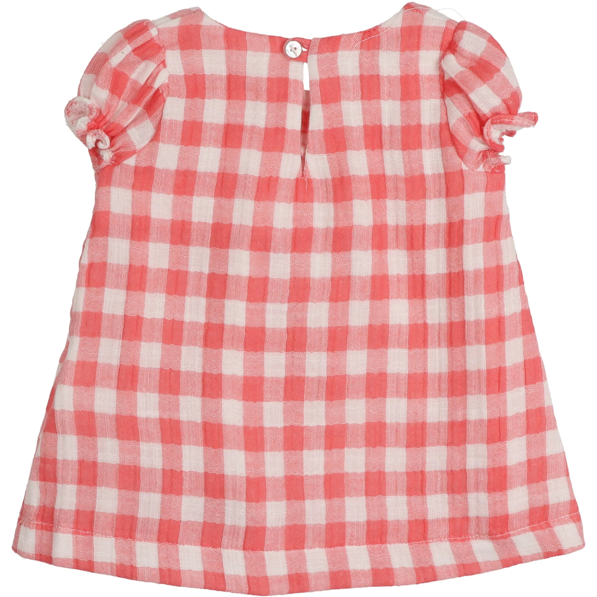 Realizzato in mussola, maniche a sbuffo, elasticizzato sul petto. Variante unica.Composizione: 70% cotone, 30% poliestere.Cura: si consigli un lavaggio a mano, non candeggiare, non asciugare in asciugatrice, si puรฒ stirare, si puรฒ lavare a secco.