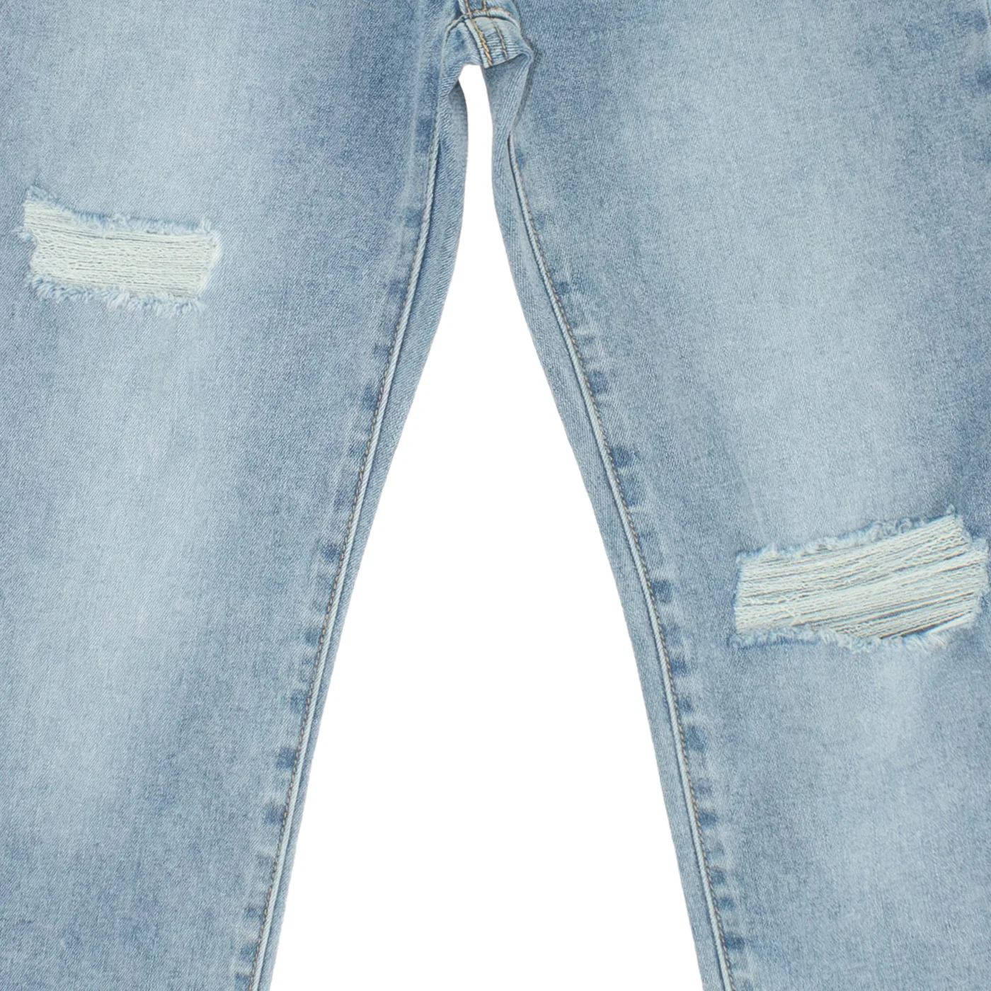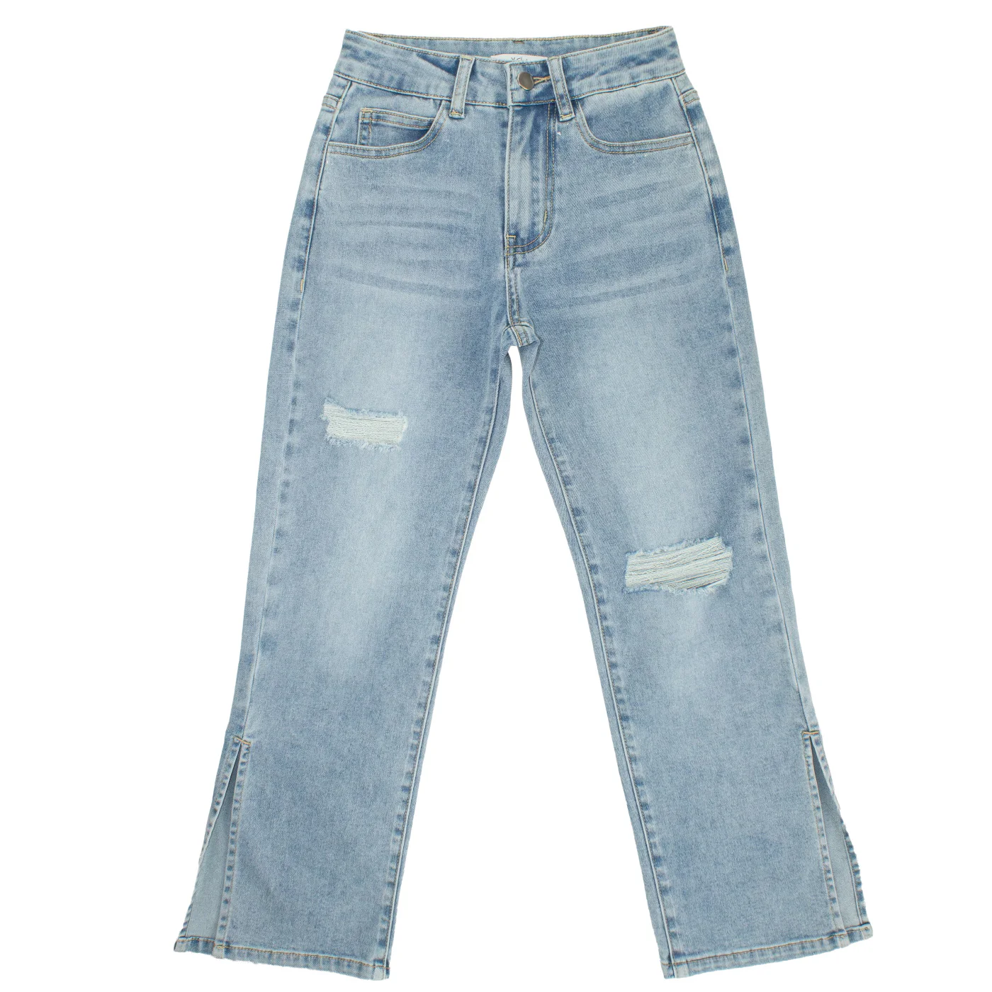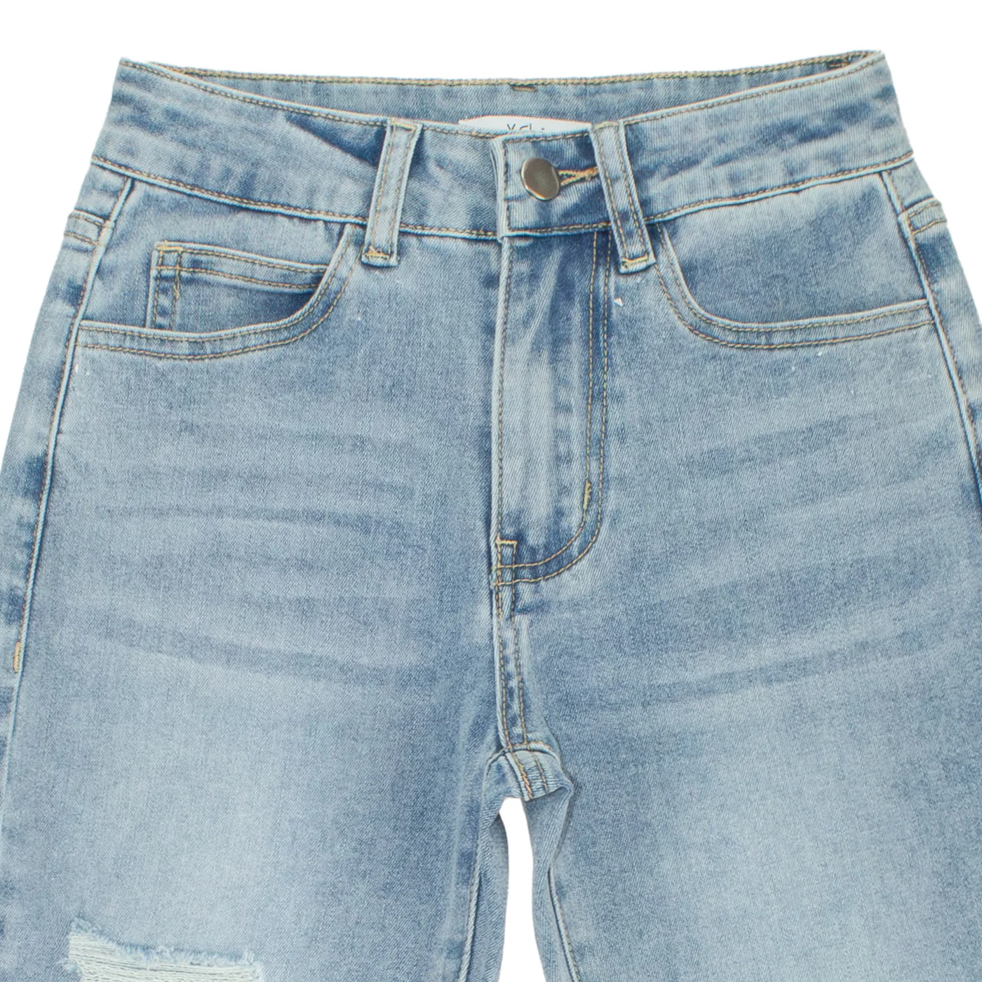 Y-Clù jeans bambina blu Denim in cotone Gamba diritta Cinque tasche Vita alta Chiusura con zip e bottone sSrappi frontali Spacchi sul fondo Composizione: 78% cotone 20% poliestere 2% elastanmade in CinaColleizione Primavera Estate Vestibilità:Taglia Età