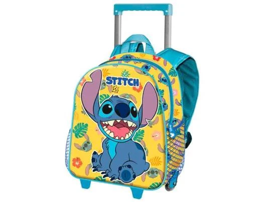 Trolley Disney Lilo Y Stich Zaino per bambini con ruote. Design frontale in rilievo. Scomparto principale con chiusura a zip e due tasche laterali in rete, capello non rimovibile. Dimensioni: 26x13x34cm